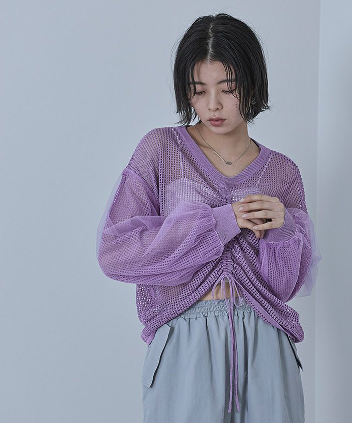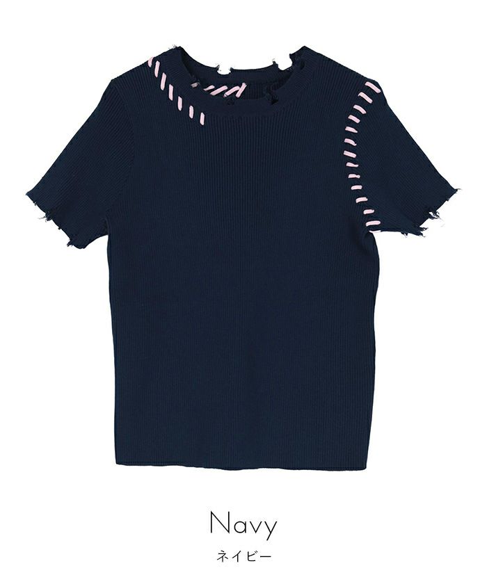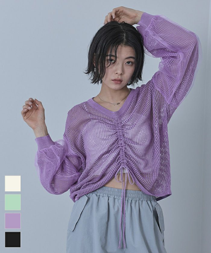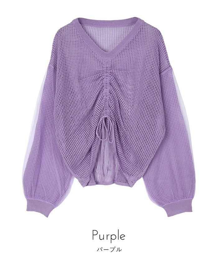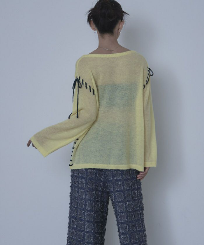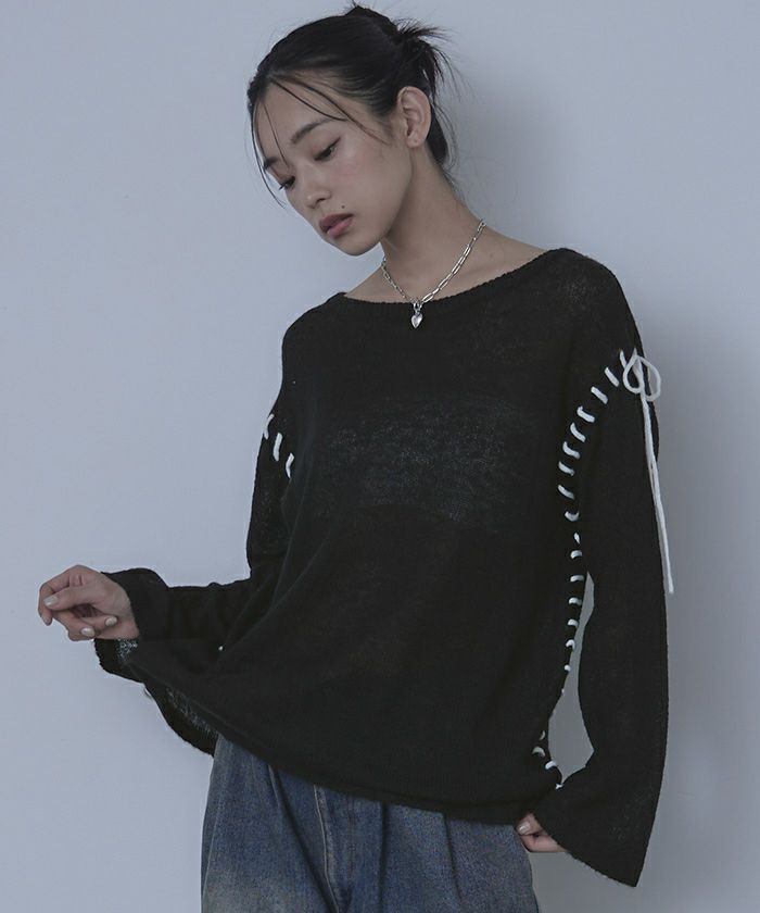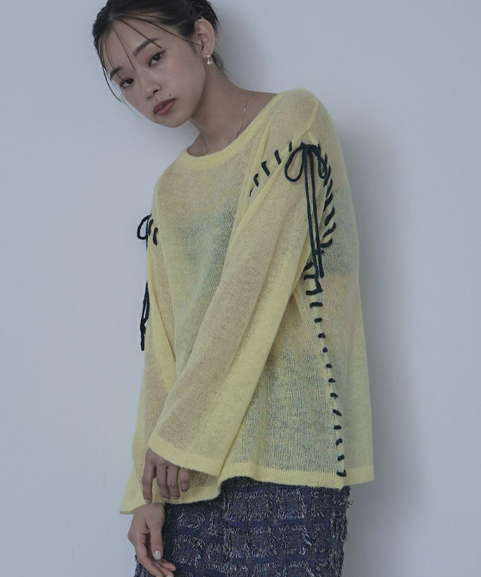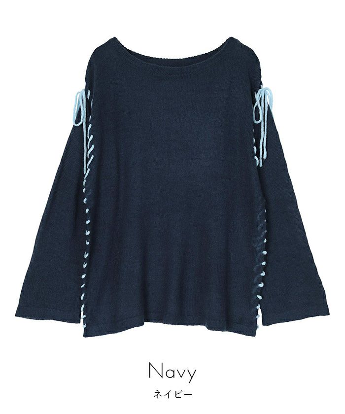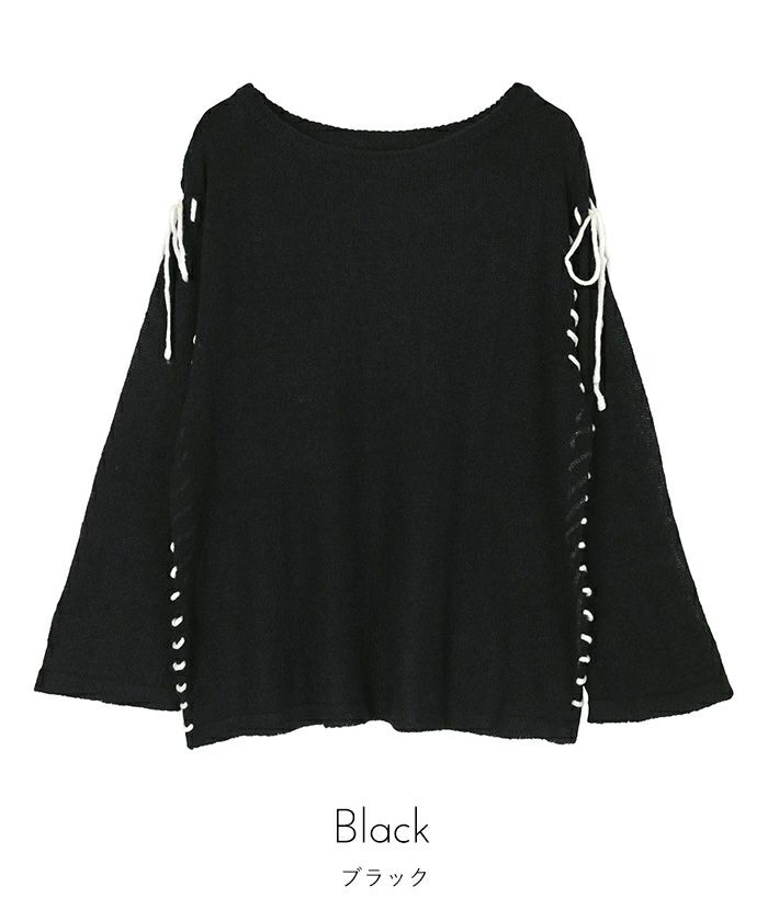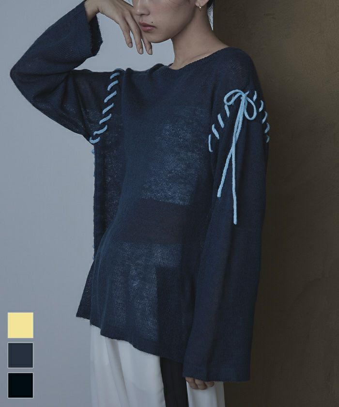 フロントリボンシアーニットトップス〔メール便可/90〕
