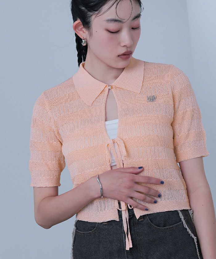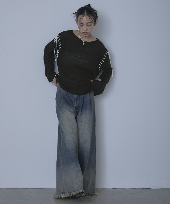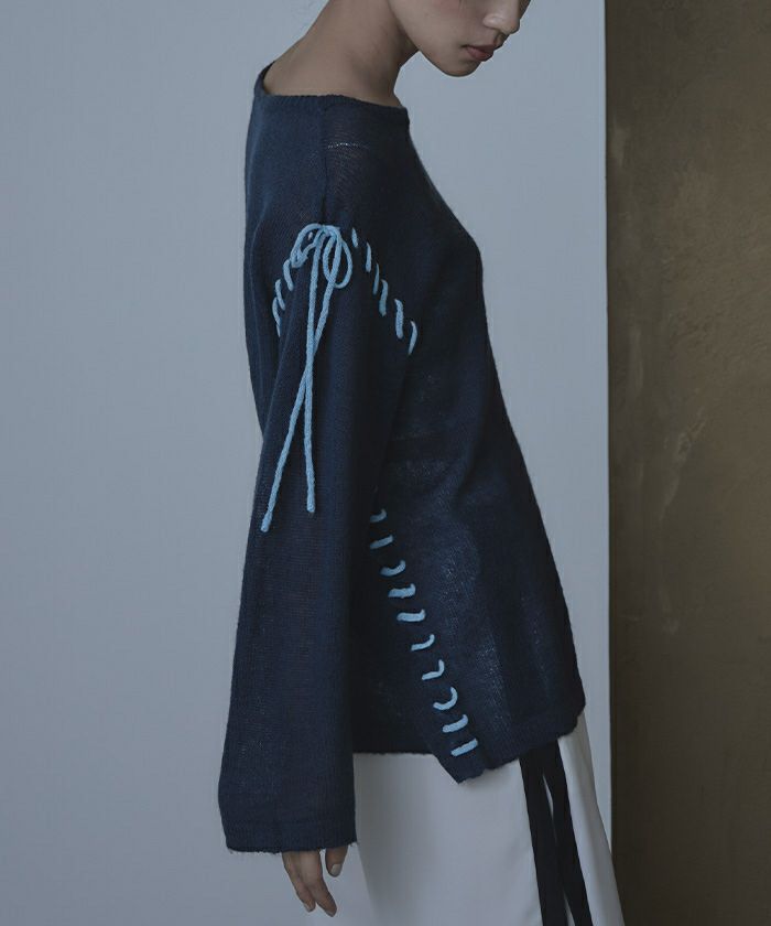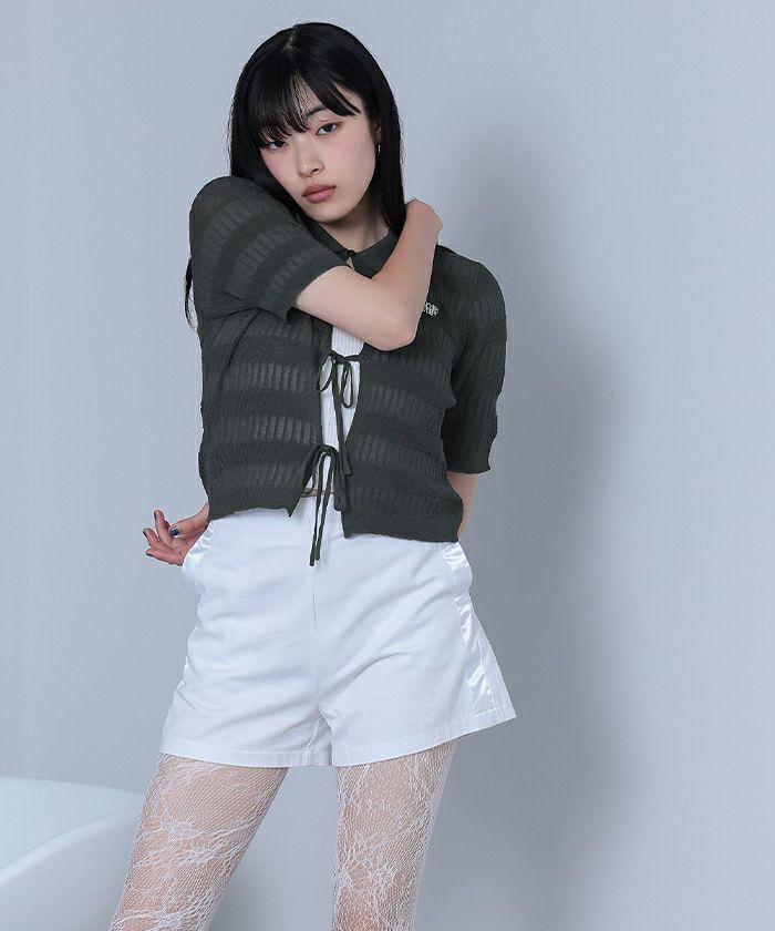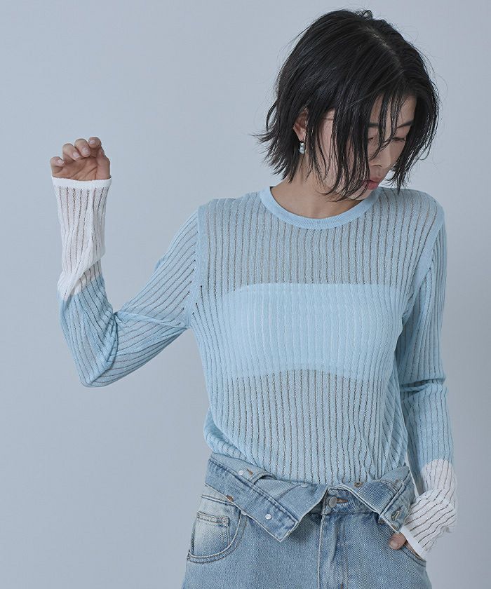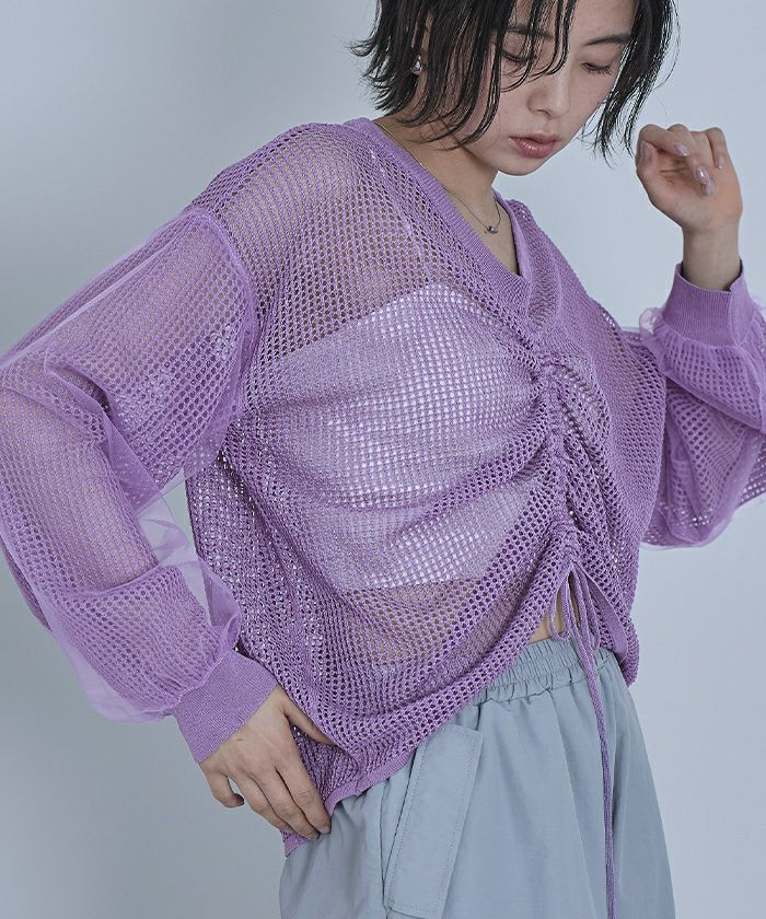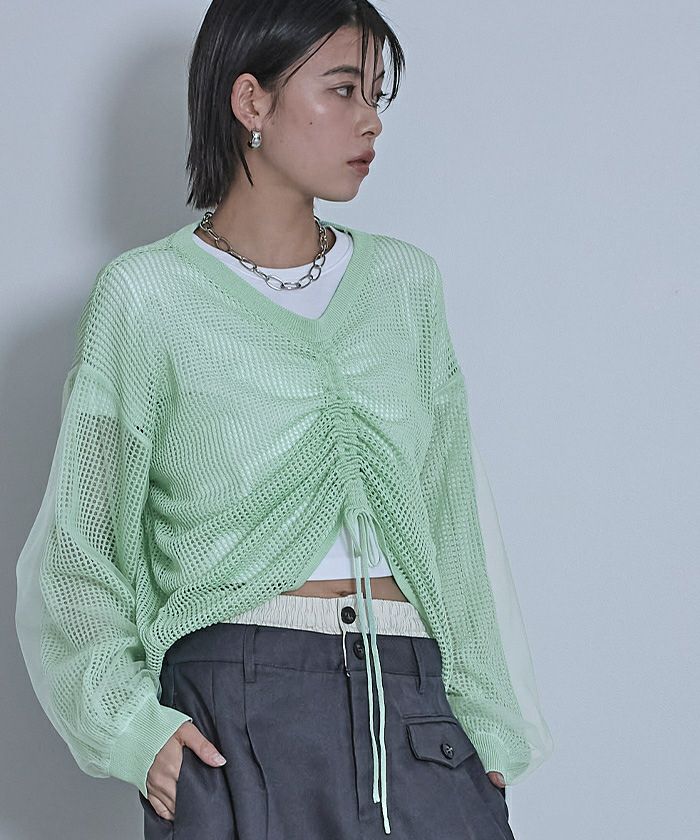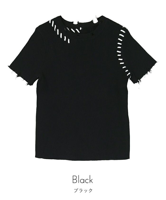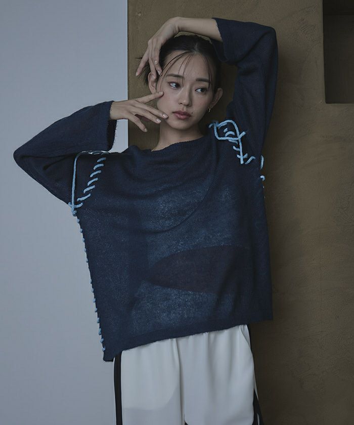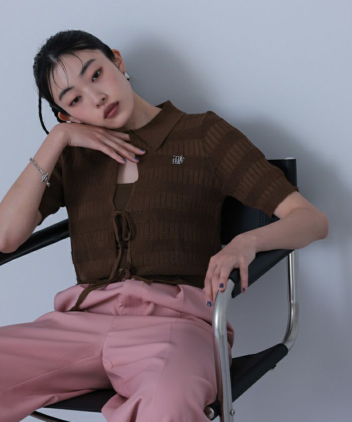 フロントリボンシアーニットトップス〔メール便可/90〕