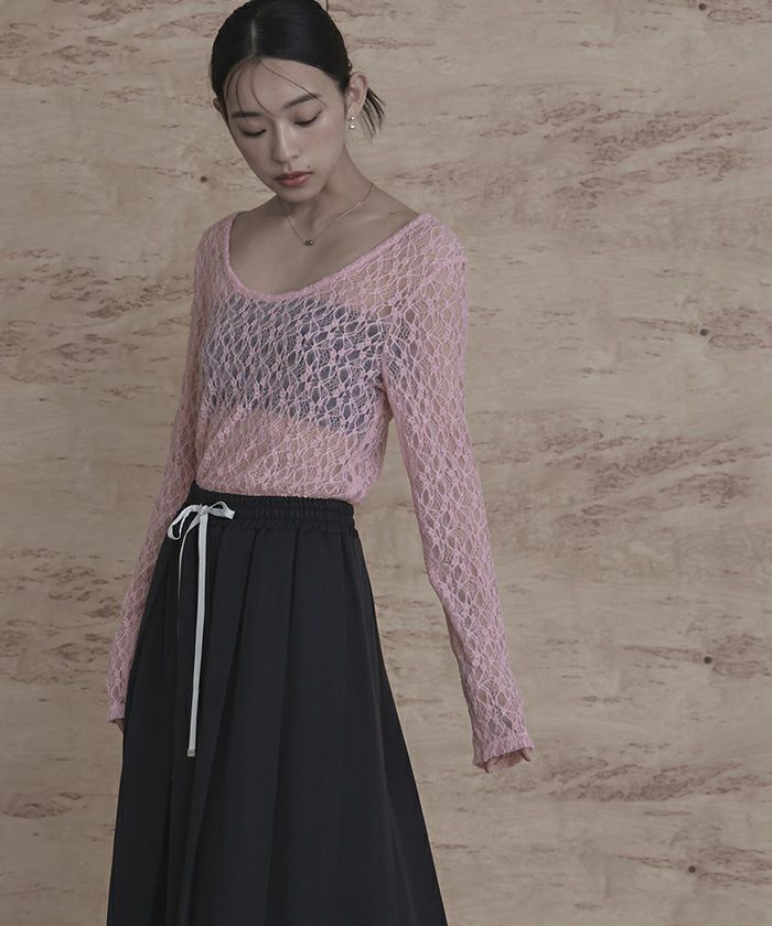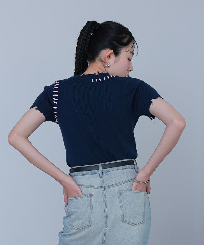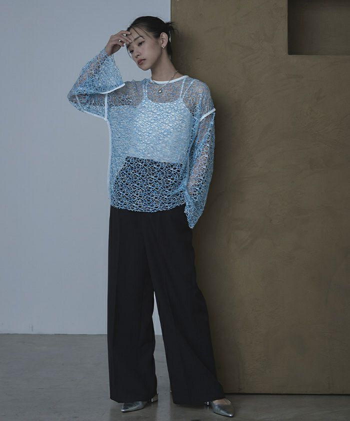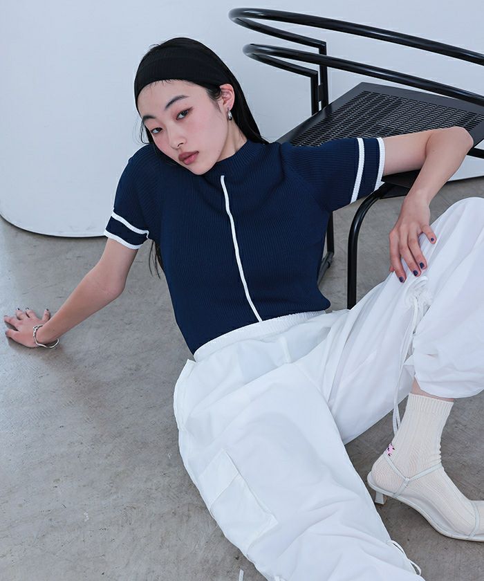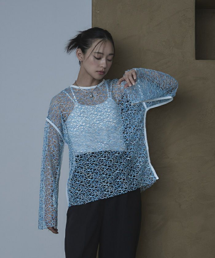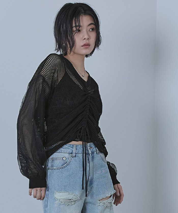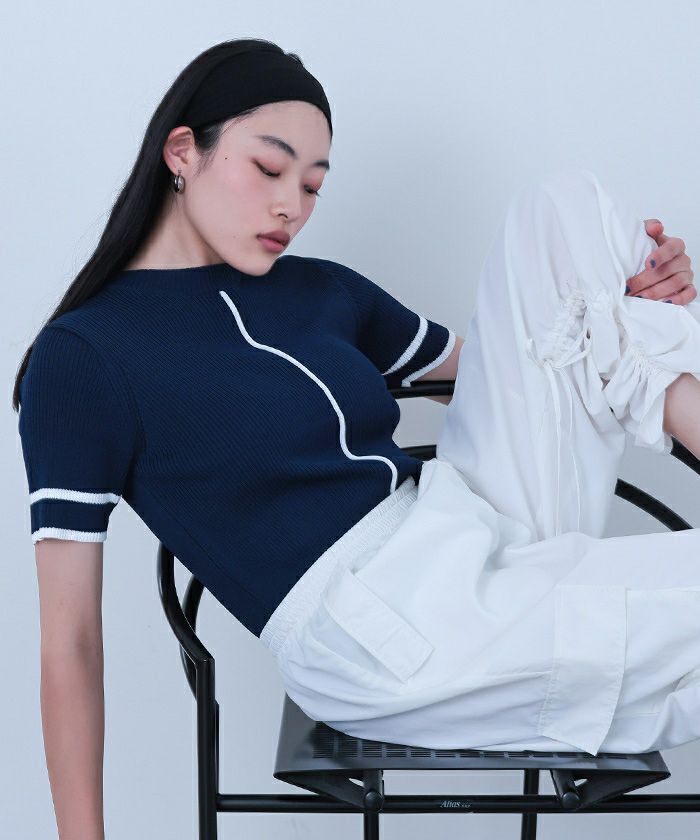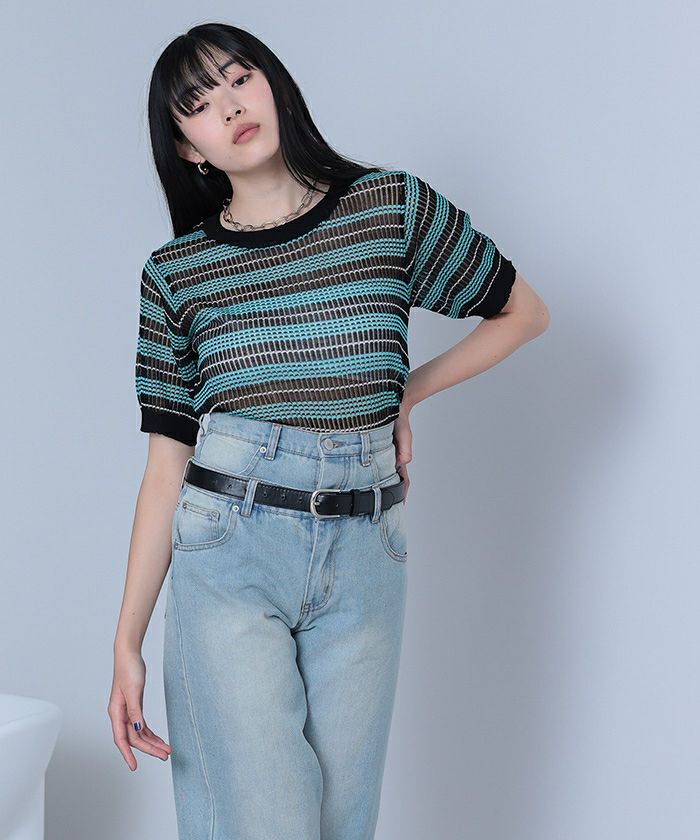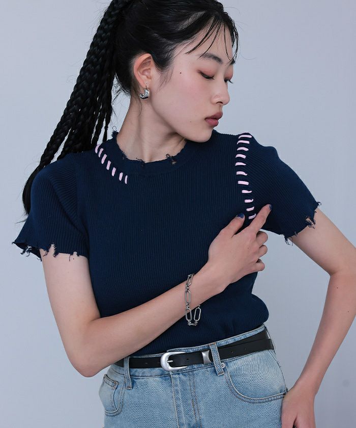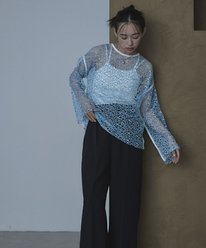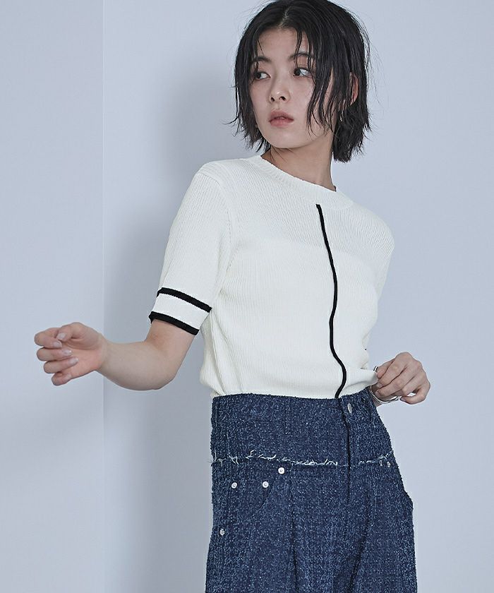 フロントリボンシアーニットトップス〔メール便可/90〕