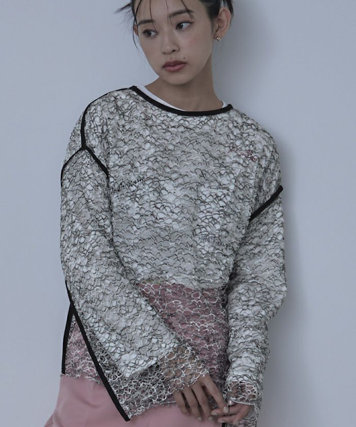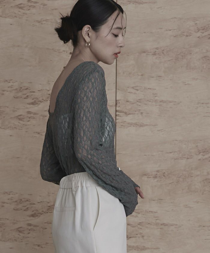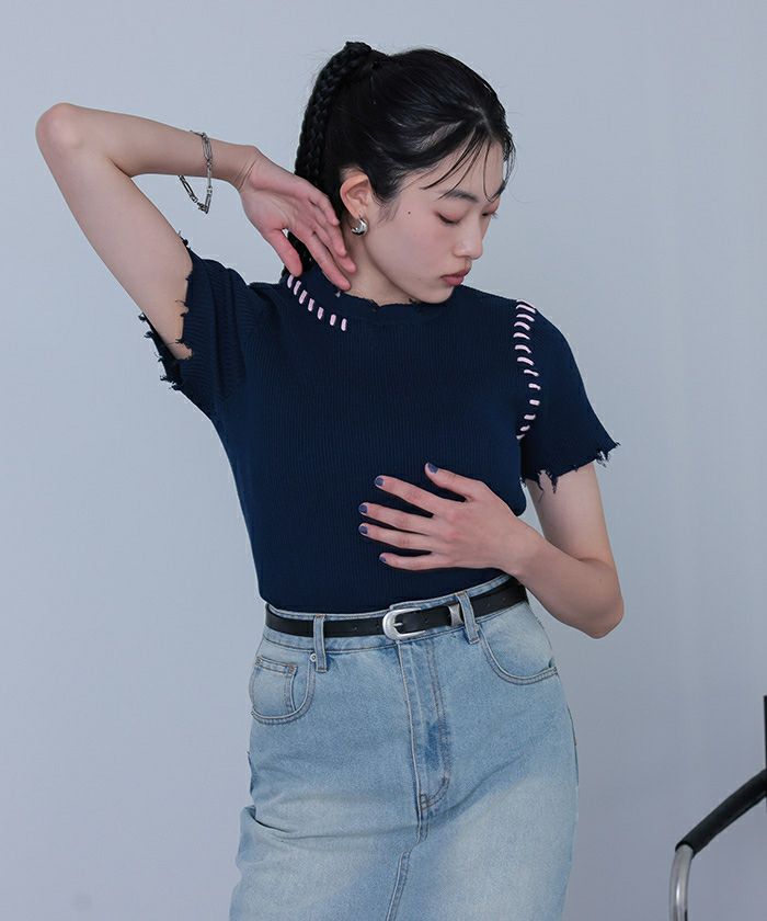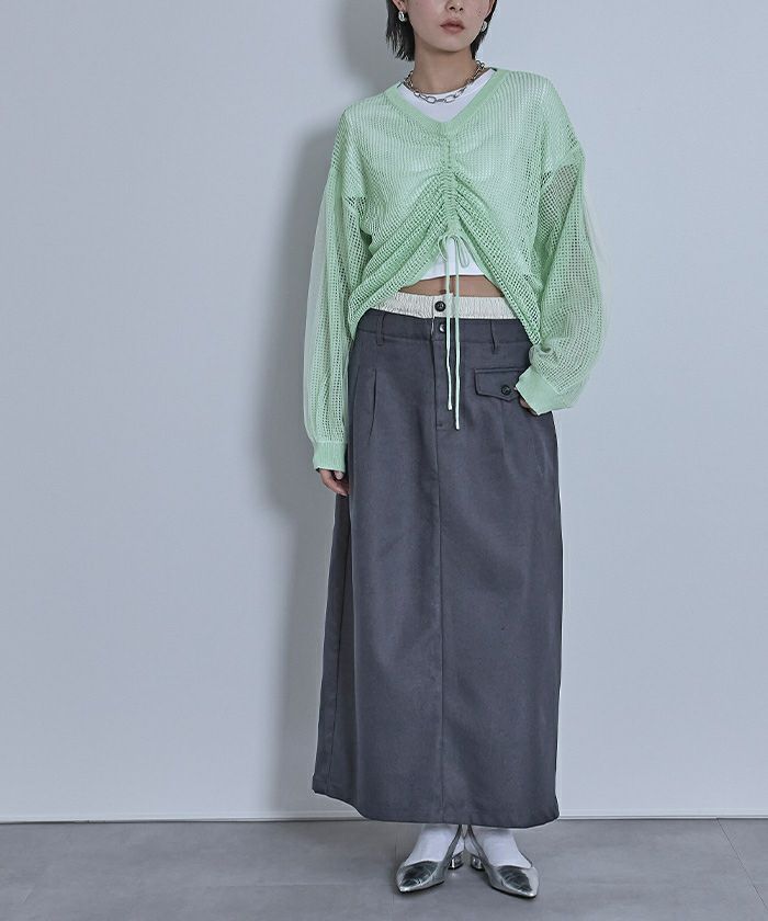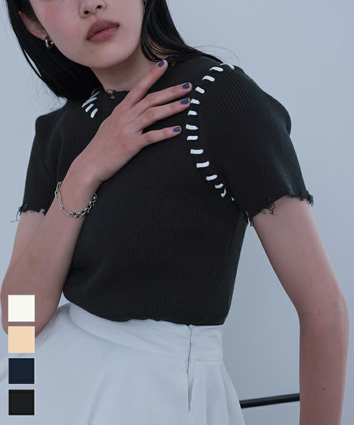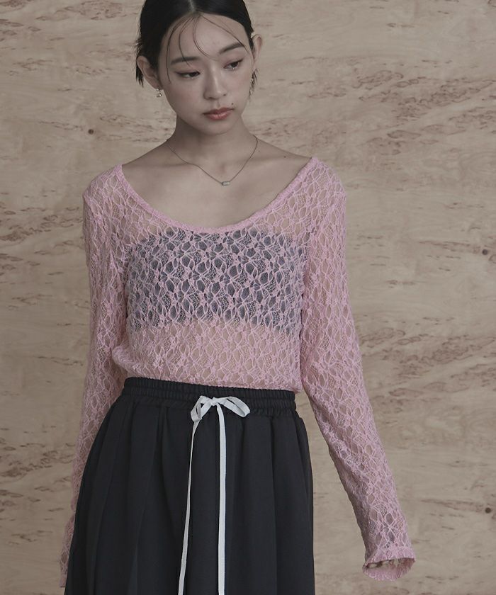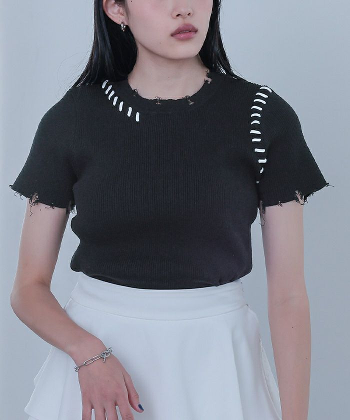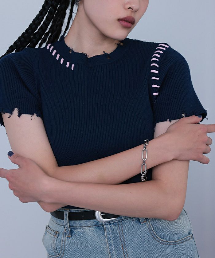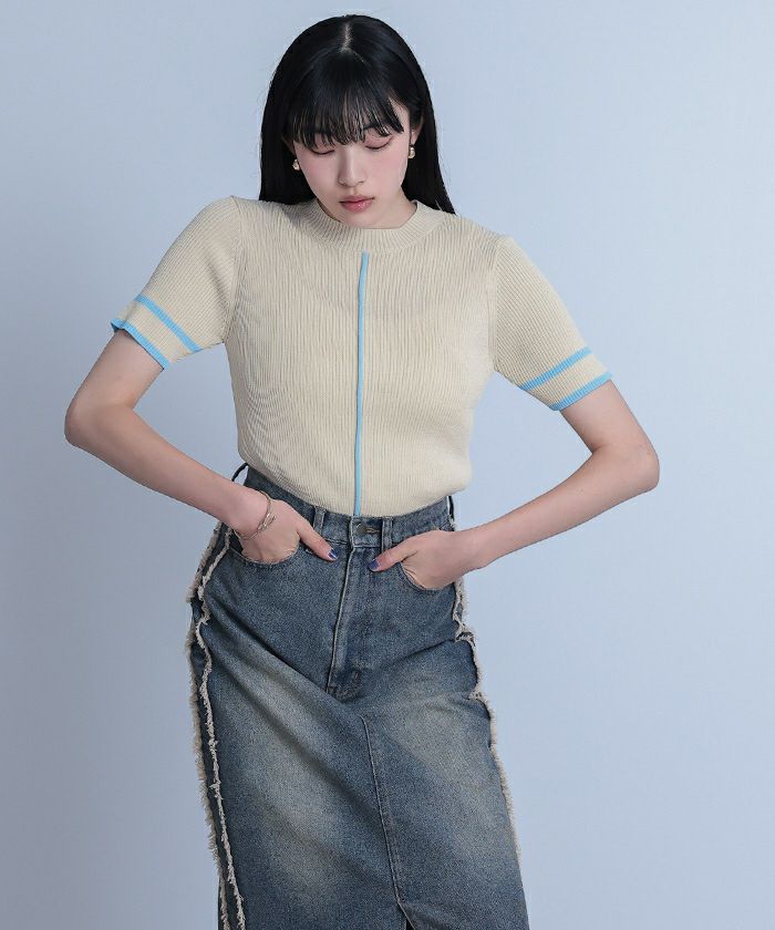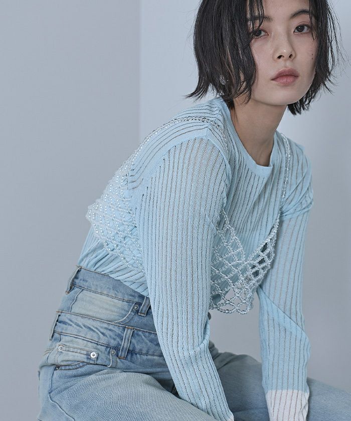 フロントリボンシアーニットトップス〔メール便可/90〕