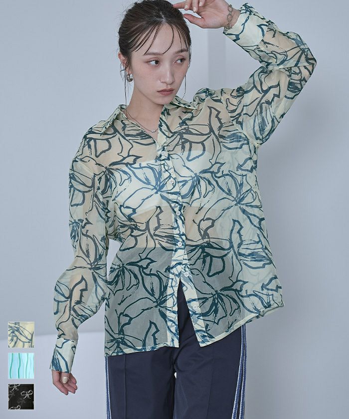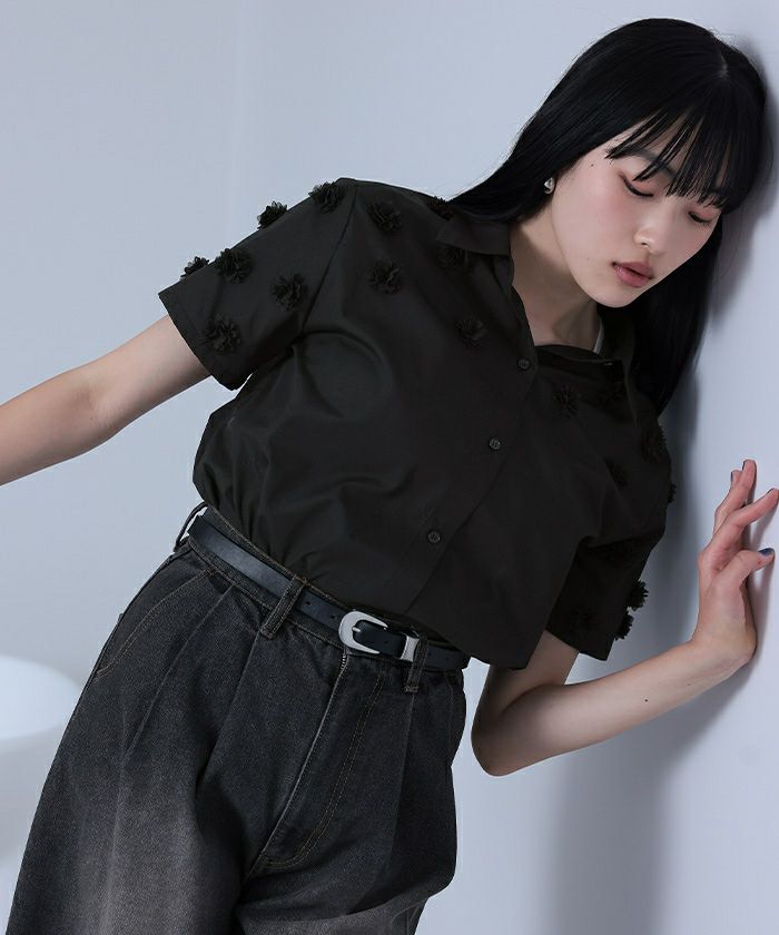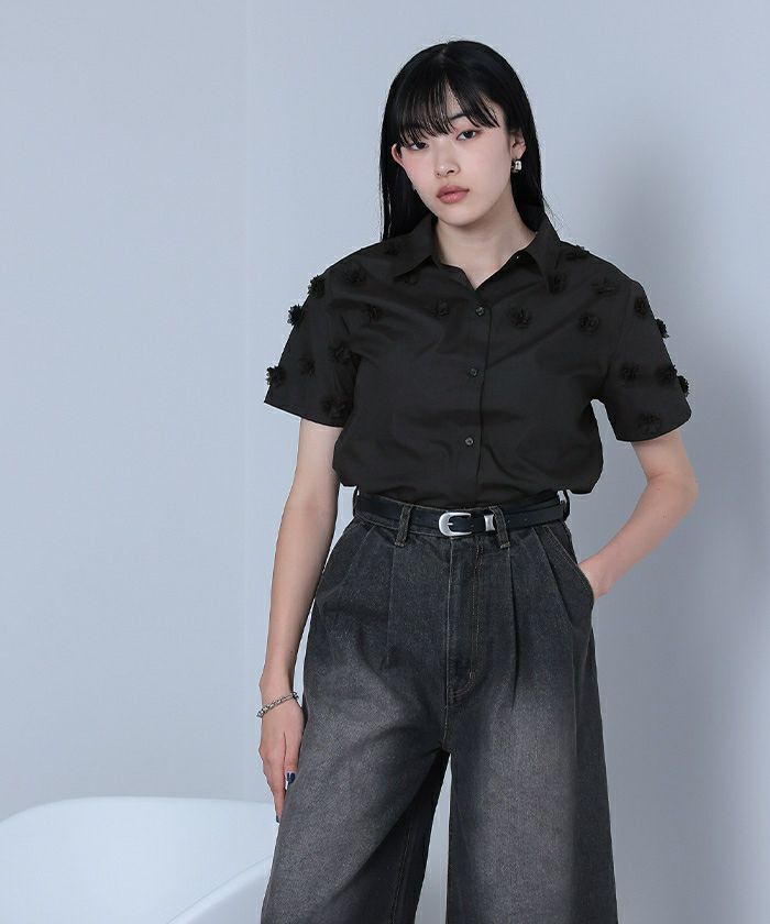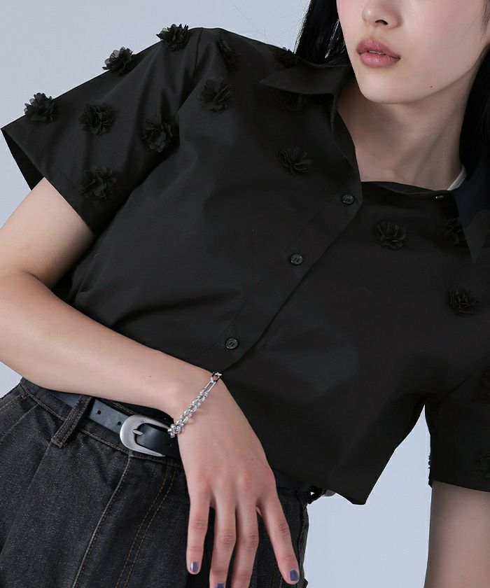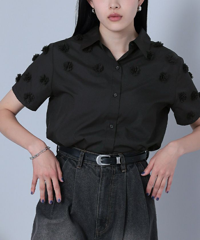 フラワーモチーフ半袖シャツ〔メール便可/100〕