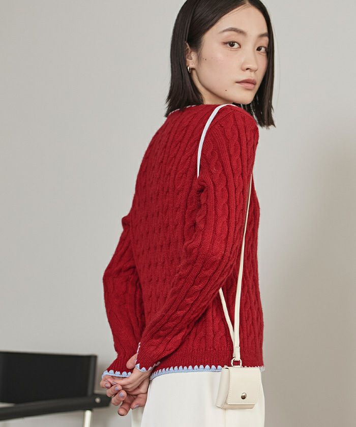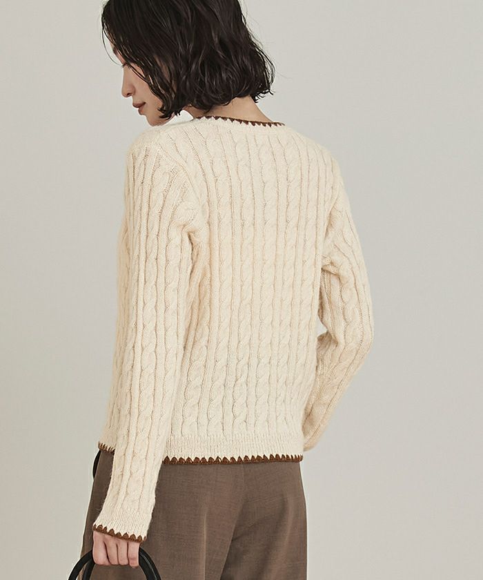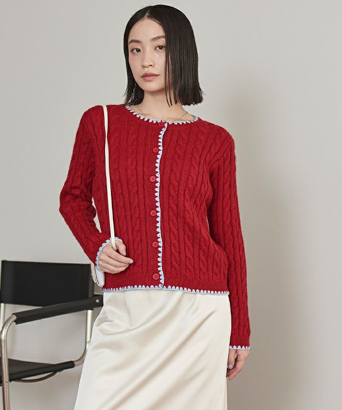 ・リメイク風の配色ステッチが映えるニットカーディガン
