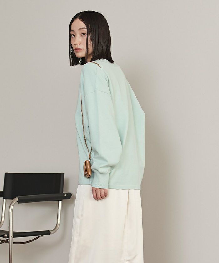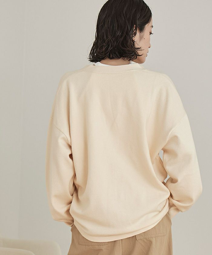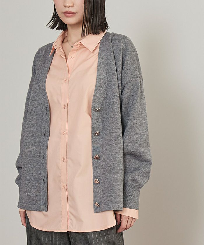 ・ゆったりとしたオーバーサイズに、変形ボタンがポイントのカーディガン