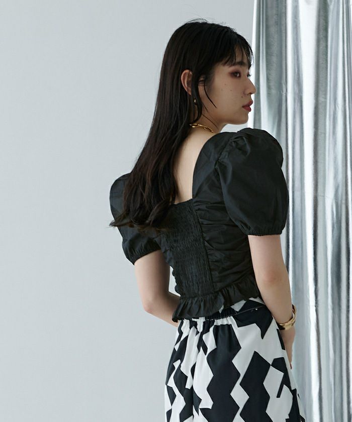 ・ボリュームのあるパフスリーブが魅力の半袖ブラウス。