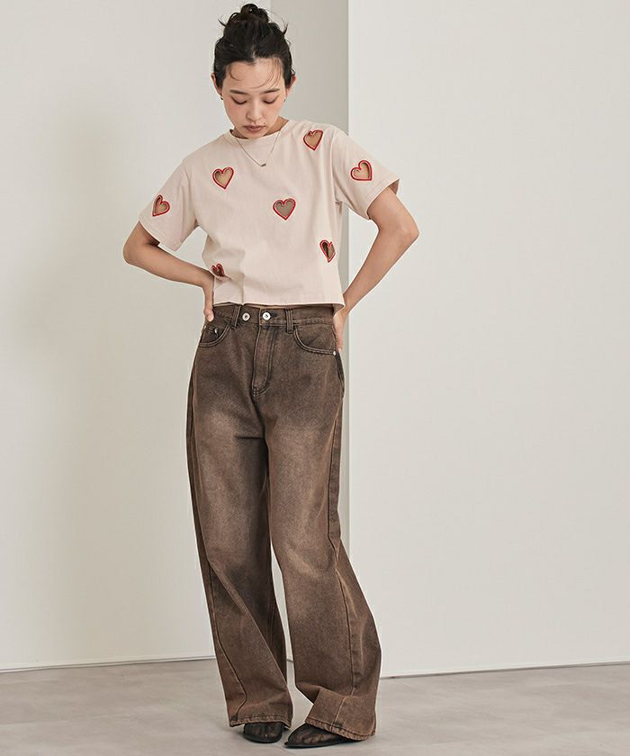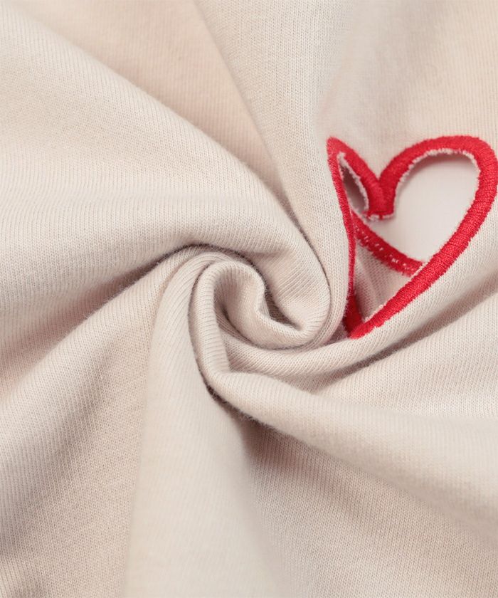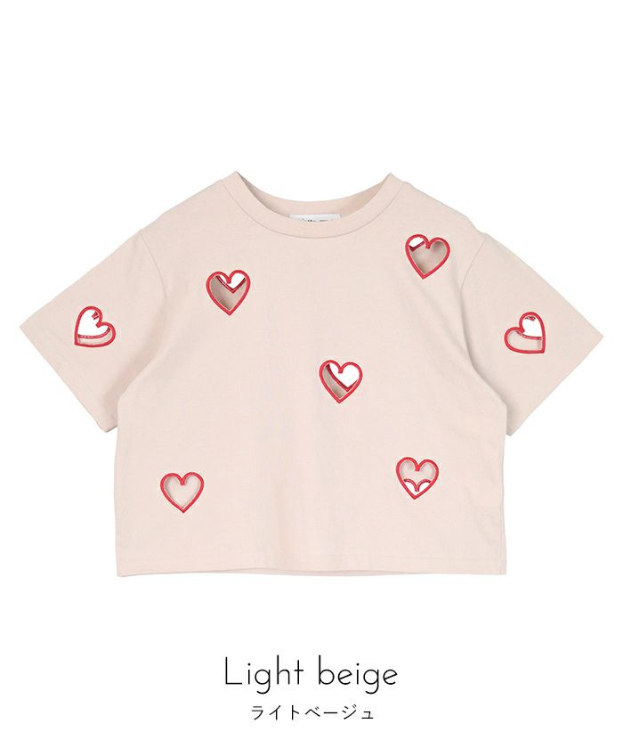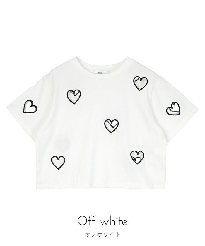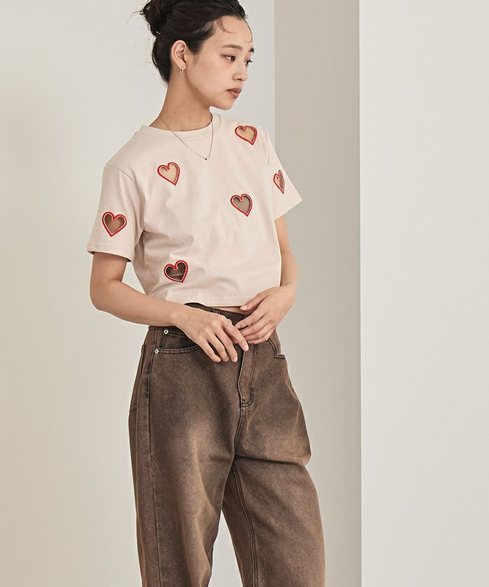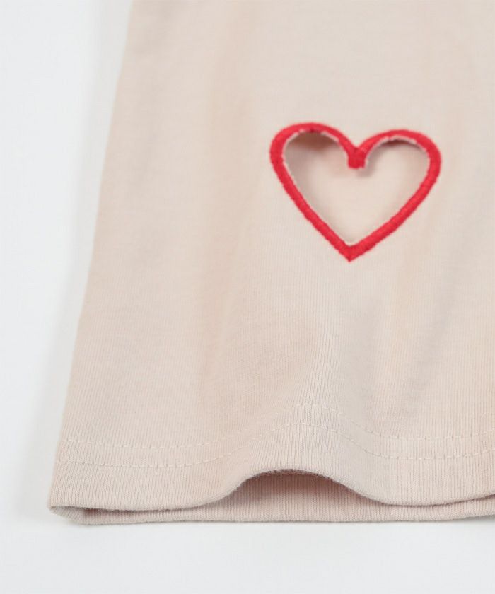 ・配色の刺繍でハートにくり抜かれたデザインのTシャツ。