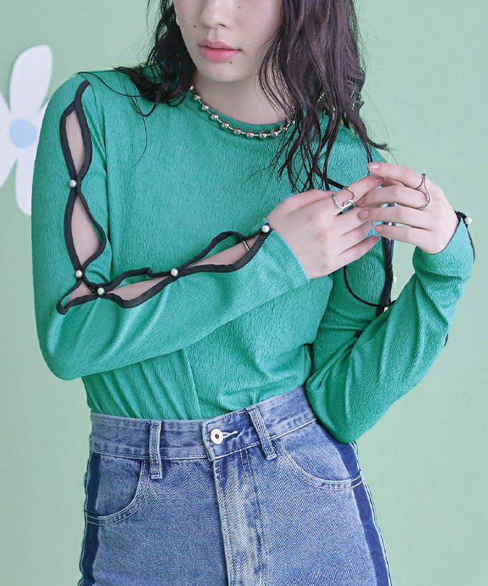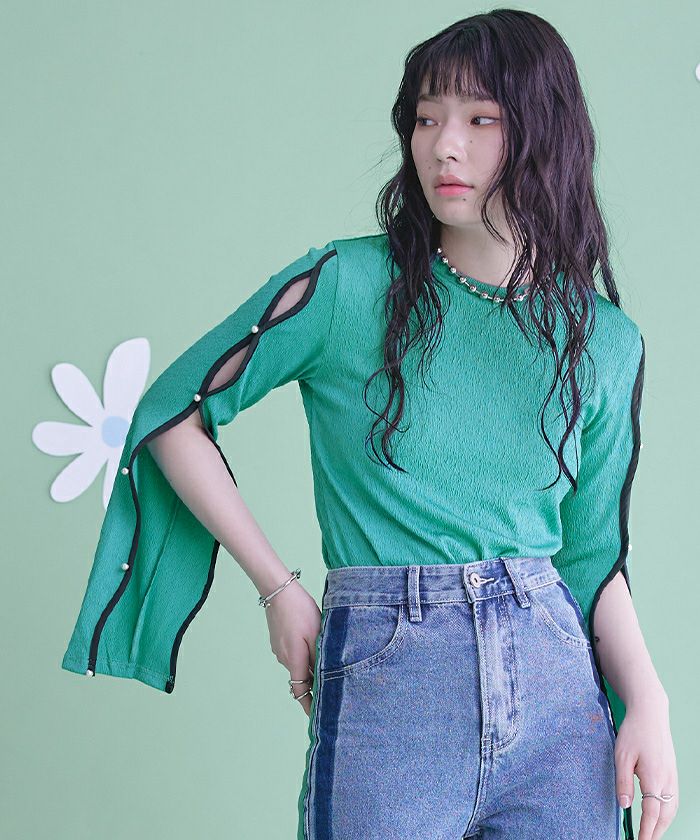 ・袖にナミナミの開きを施しさりげない肌見せが可能。
