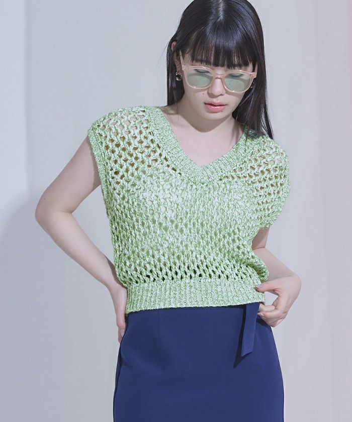 ・深めのVネックなのでTシャツやキャミソールなど、どんなトップスともレイヤードしやすいデザインです。