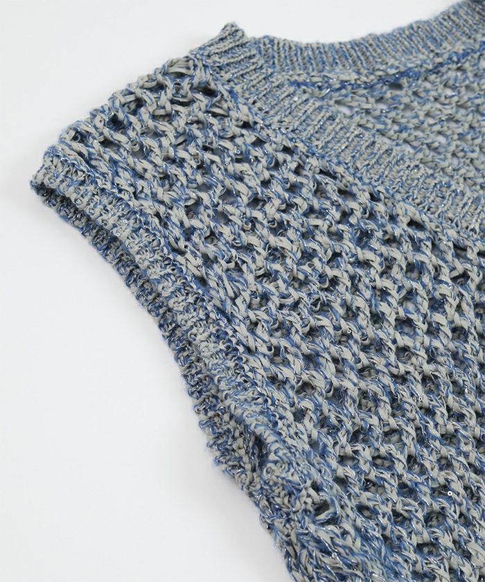 ・スパンコール付きのキラキラの糸を引き揃えてトレンド感をプラス。
