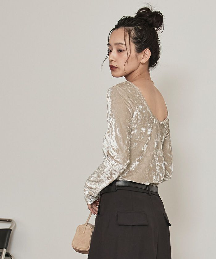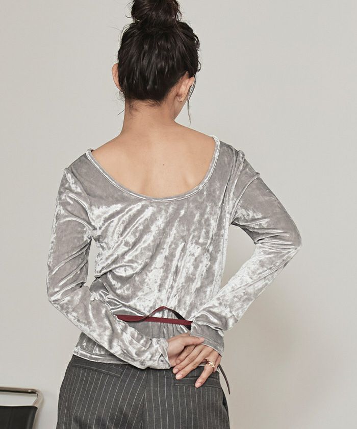 前後2wayUネックベロアトップス〔メール便可/100〕