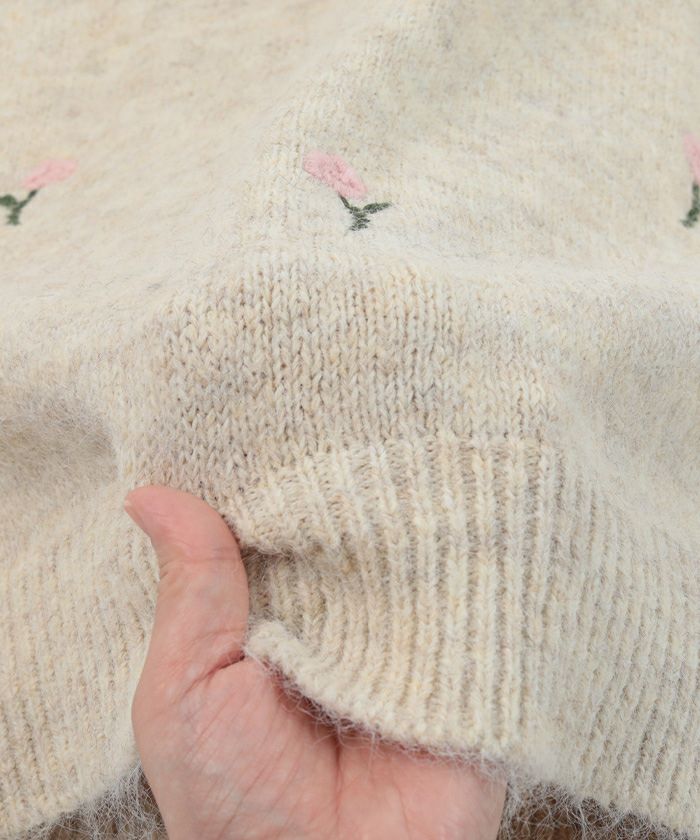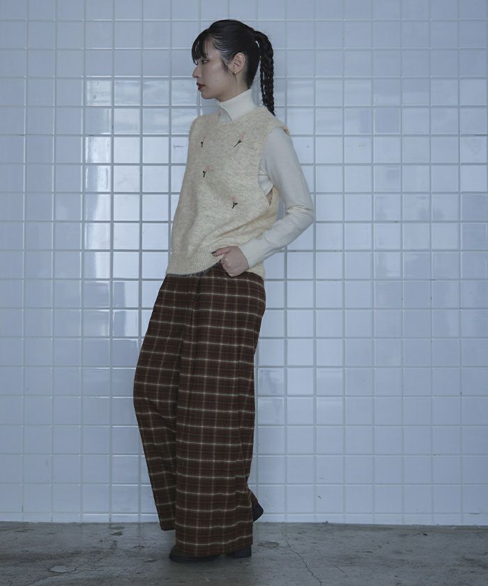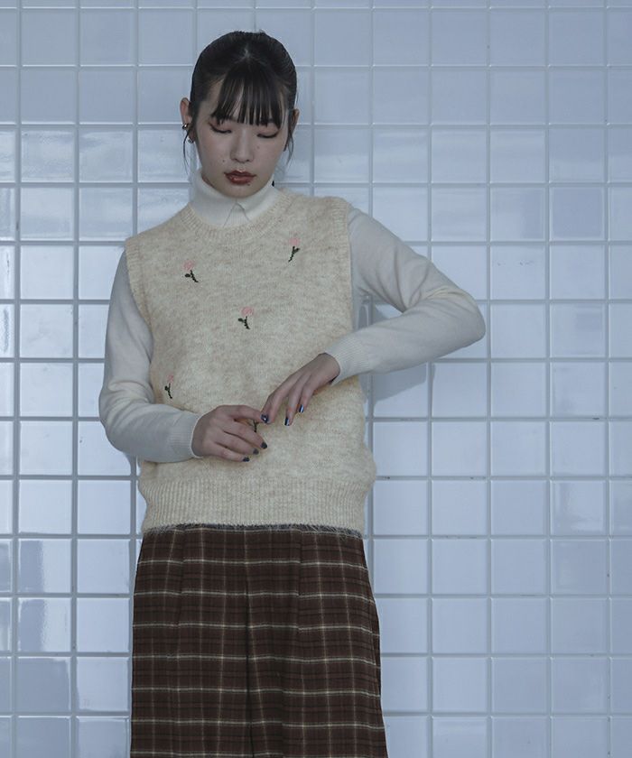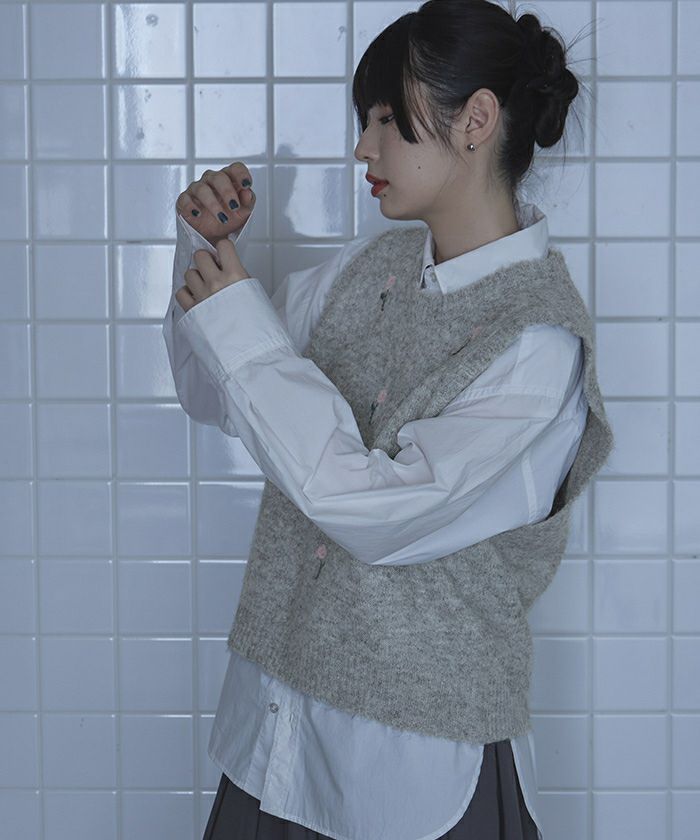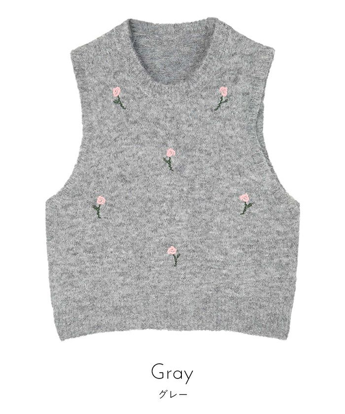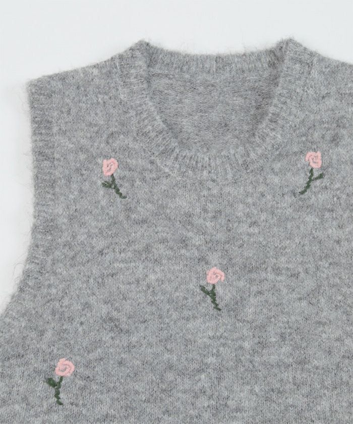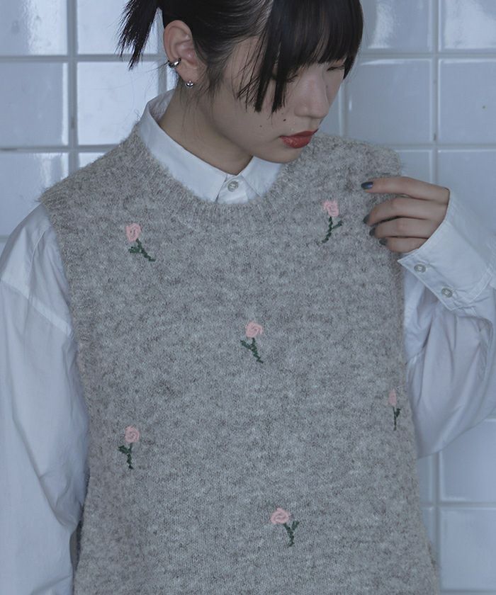 ・トレンド感のあるローズ刺繍がポイントのニットベスト