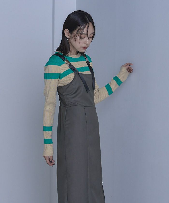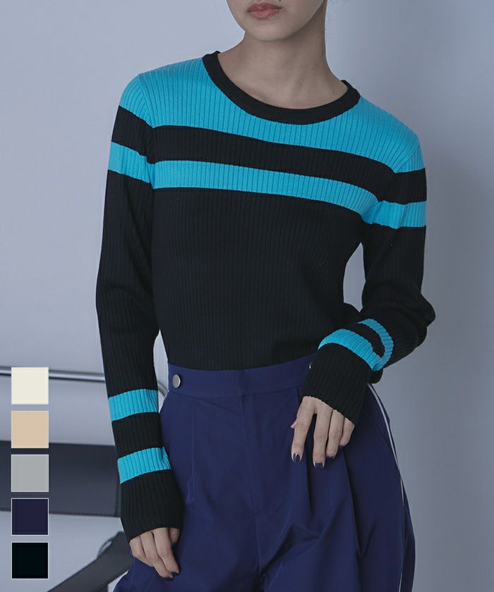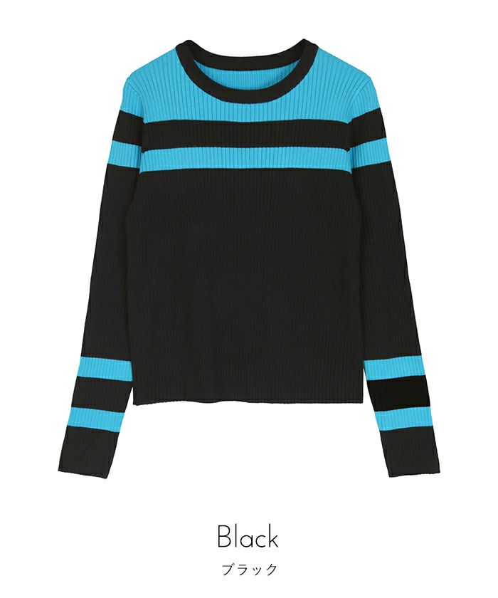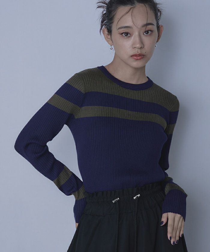 商品情報 ・配色が目を引くマルチボーダーリブニット