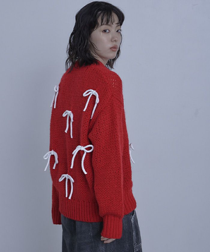・配色のリボンがアクセントのニット