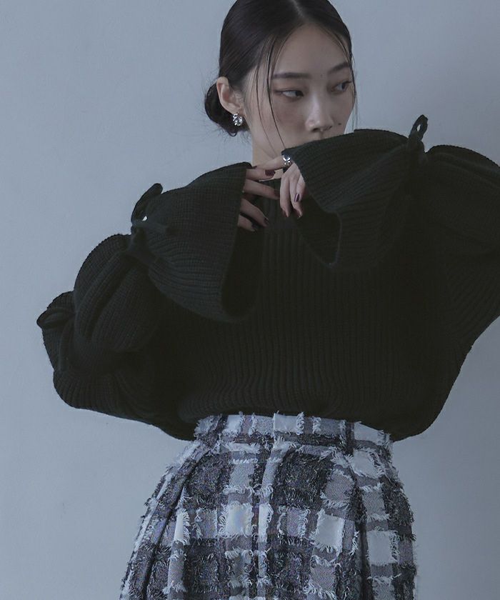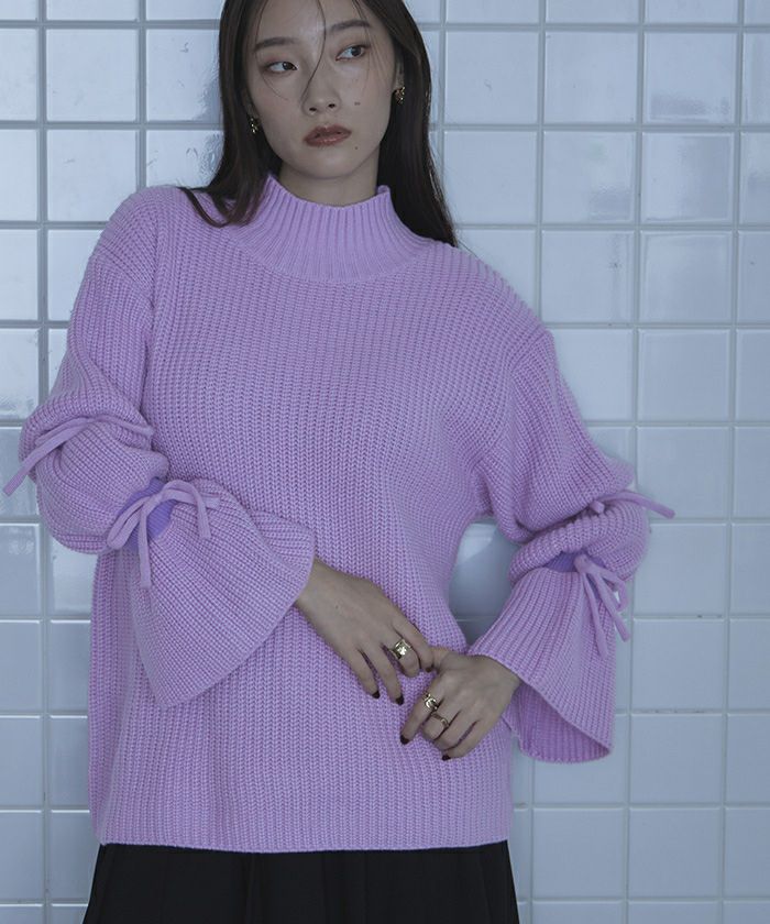・ボリューム感のあるキャンディスリーブがポイントのニット
