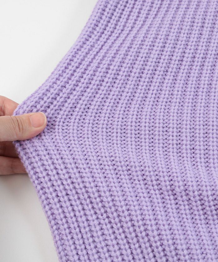 パープルのカラーがとっても可愛いくて、冬にめちゃくちゃ大活躍します。袖が長いからおしゃれに見えて、着回しもかなりできます。