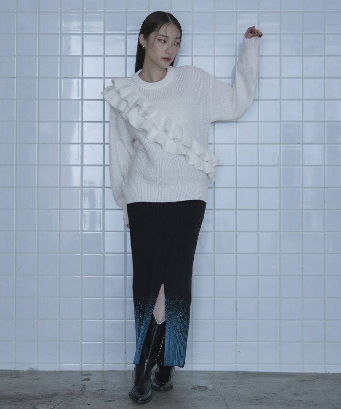 ・アシンメトリーデザインで甘くなりすぎず、モードっぽさも演出