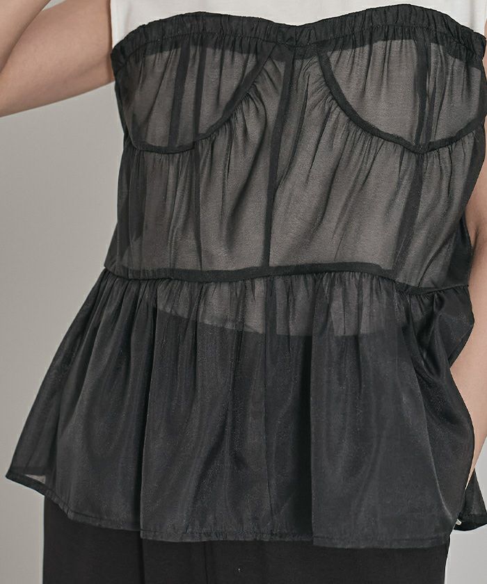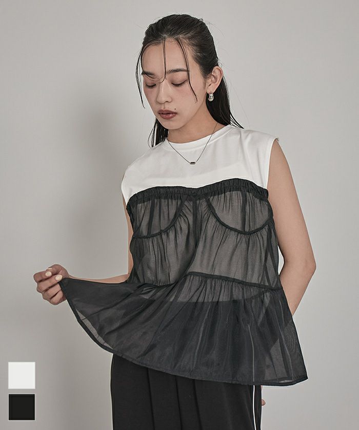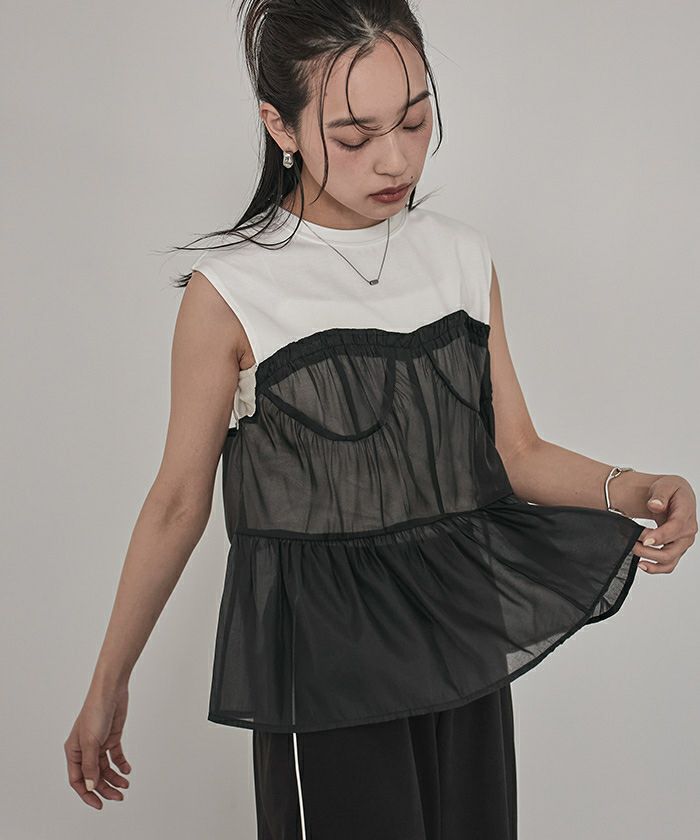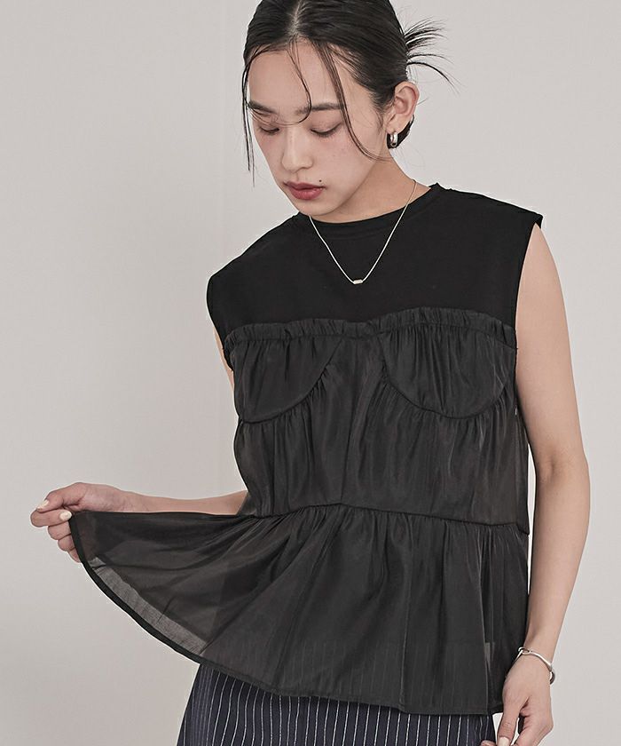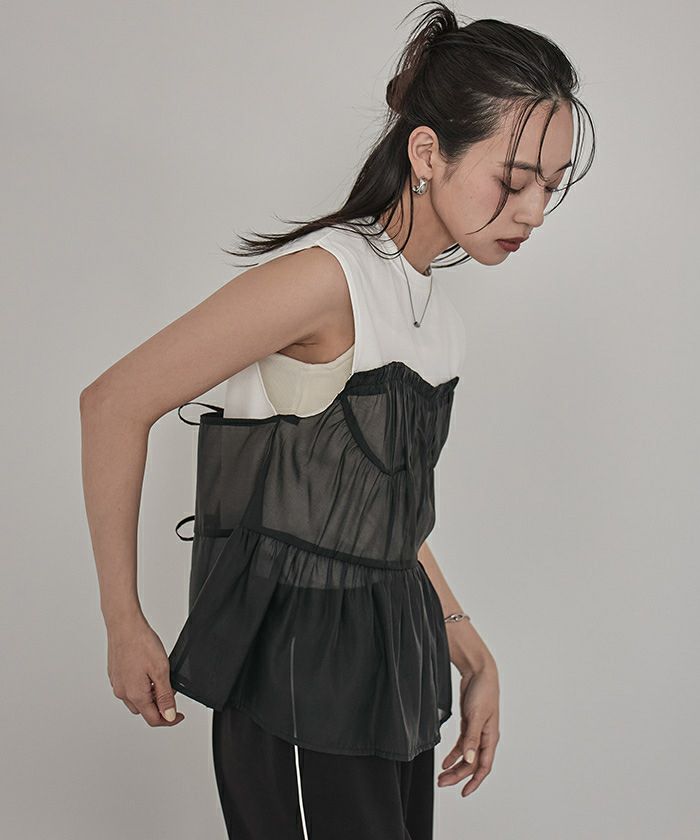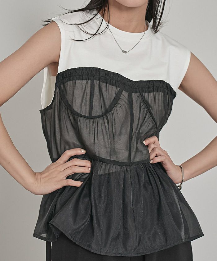 ・ビスチェ見えのオーガンジーがドッキングされたトップス