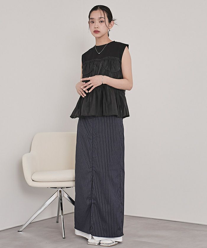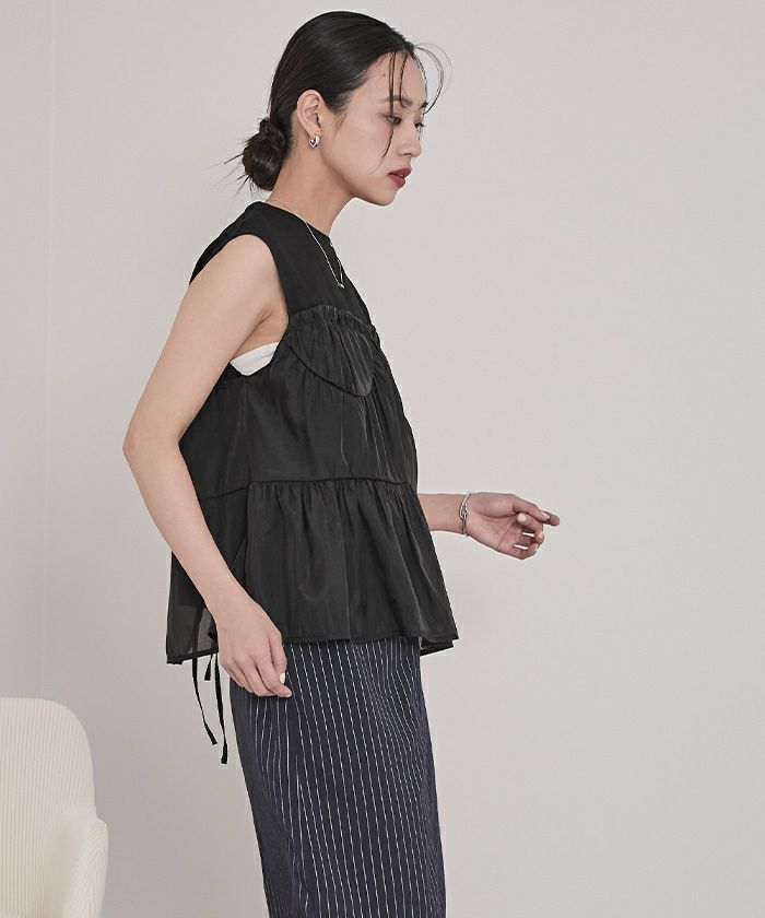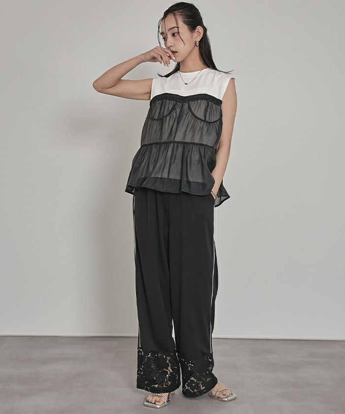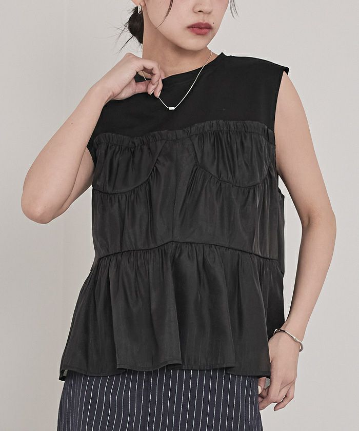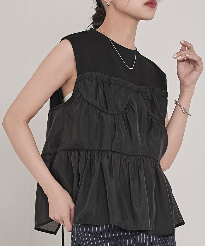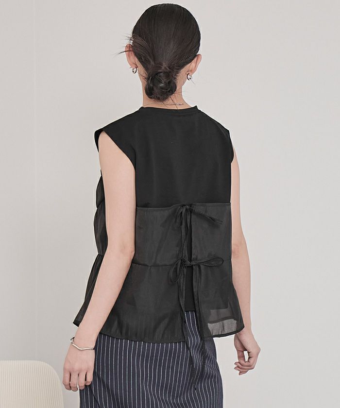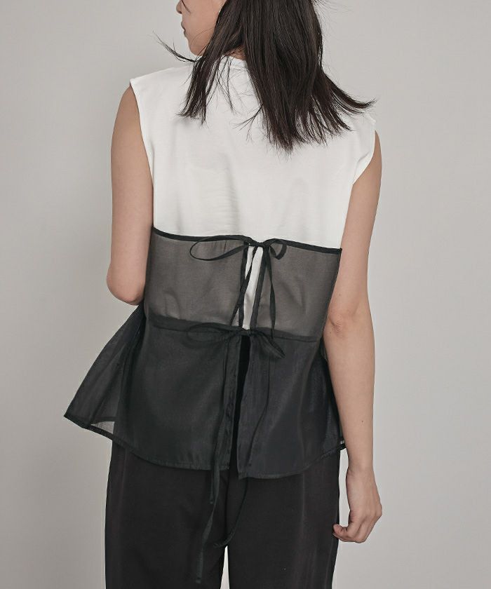 ・ビスチェ見えのオーガンジーがドッキングされたトップス