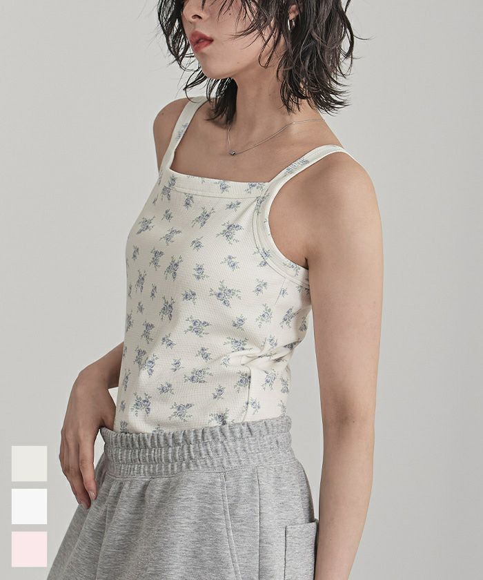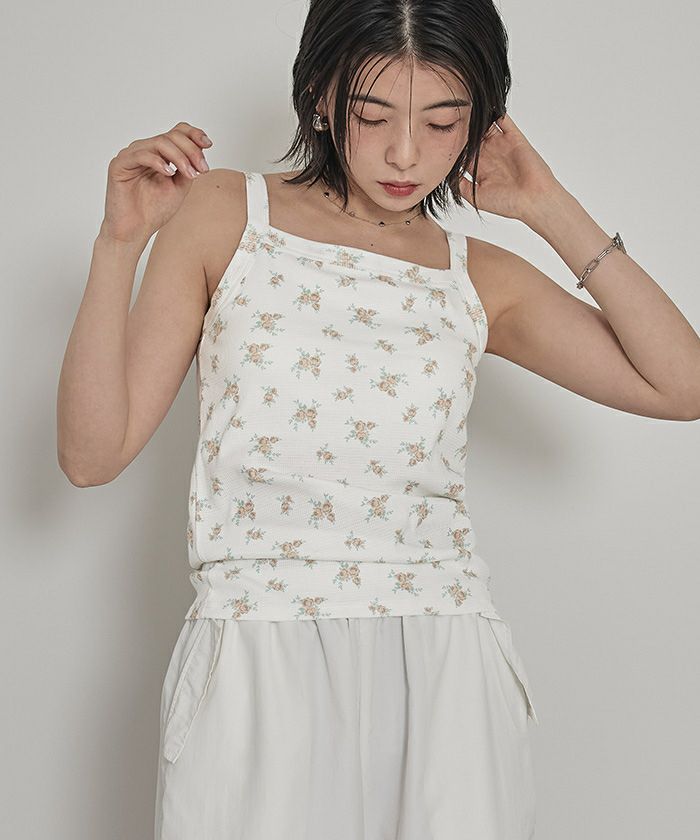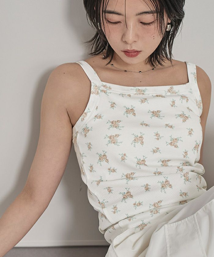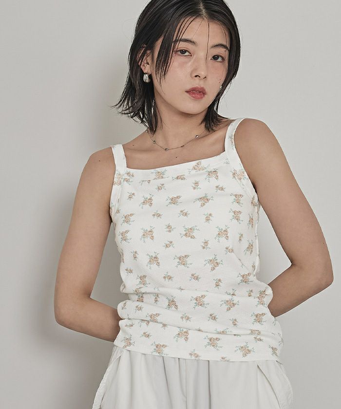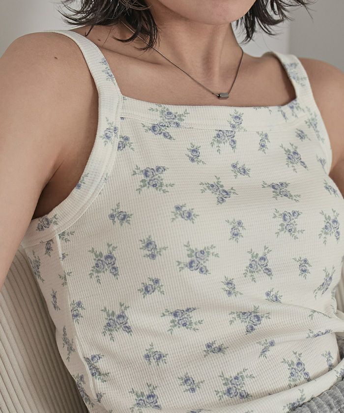 カップ付き小花柄サーマルキャミ