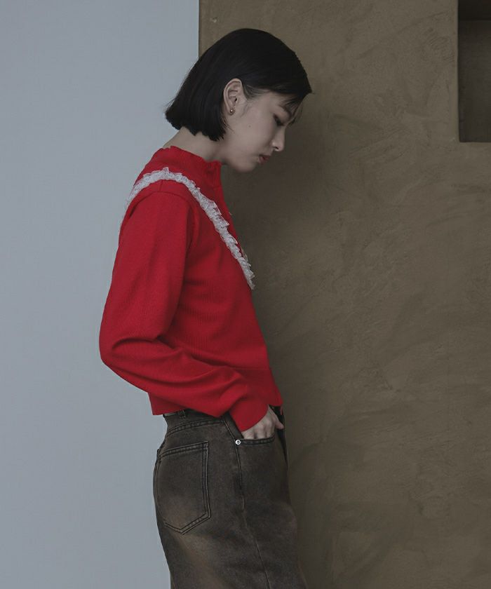レースフリルダブルジップカーディガン