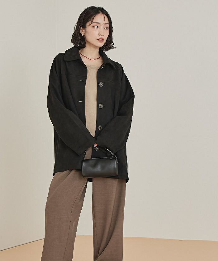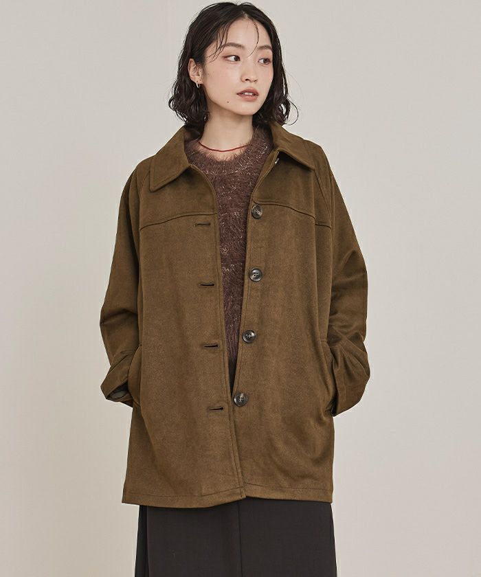 ・トレンドのフェイクスエード素材を使用したステンカラージャケット