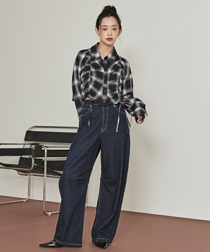 ・人気のドロストデザインにトラッドなチェック柄が目を惹く一着