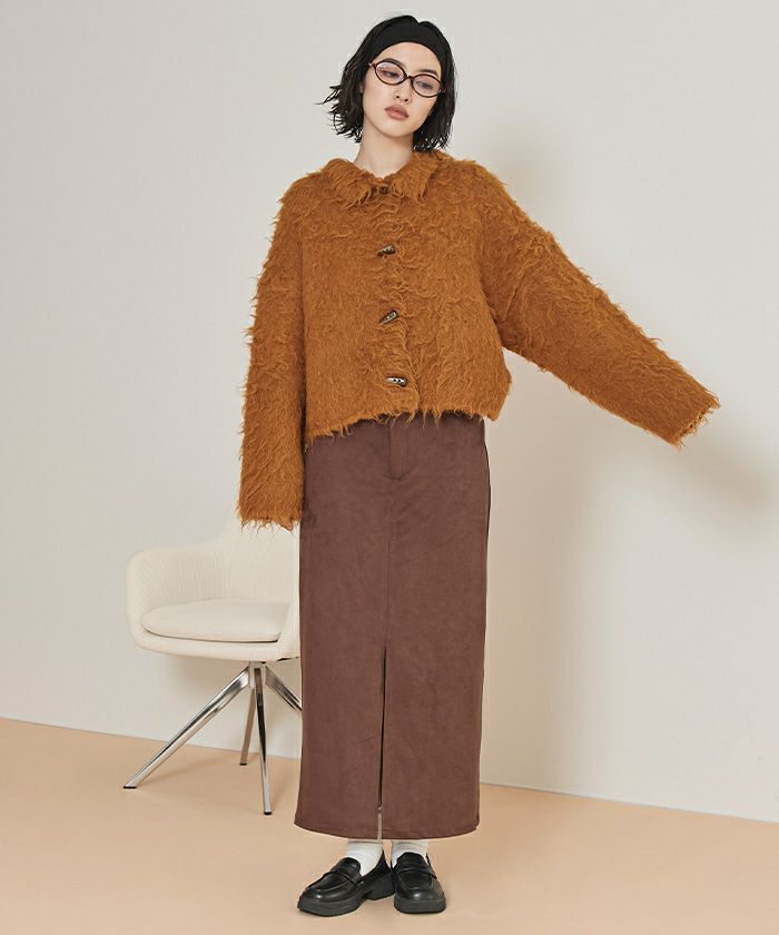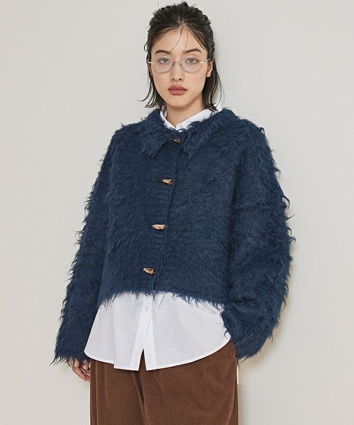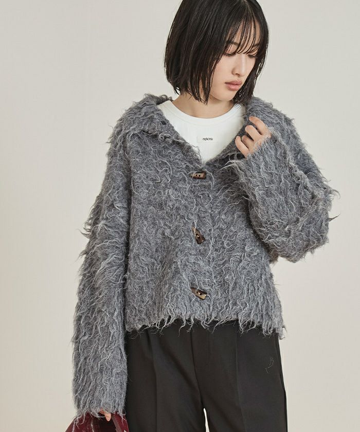 ・ふんわりとしたモヘアライク素材が魅力のショートカーディガン