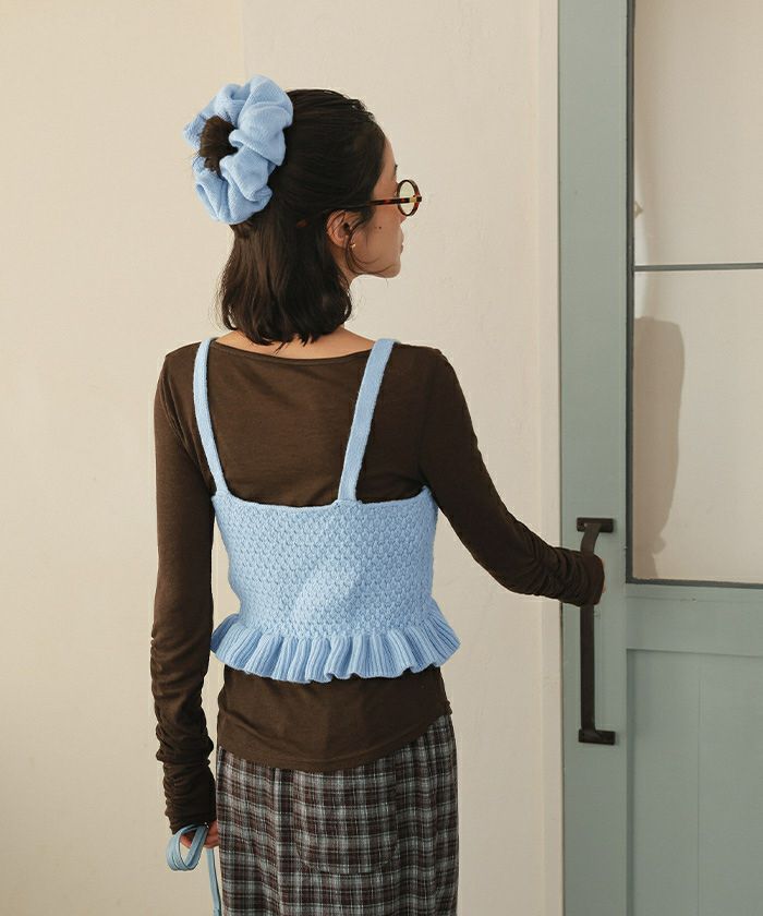・ふんわりとしたシュシュがセットになったニットキャミビスチェ