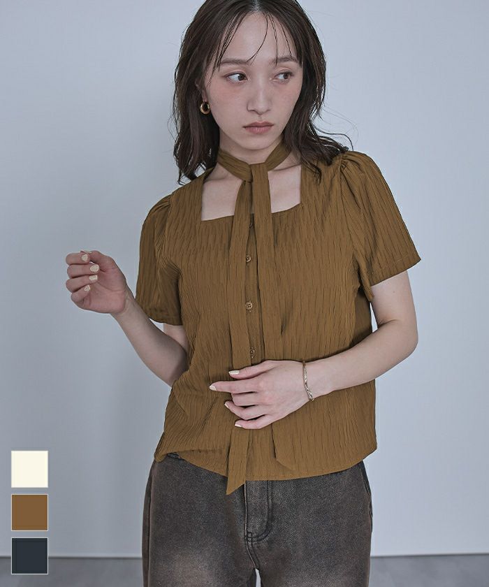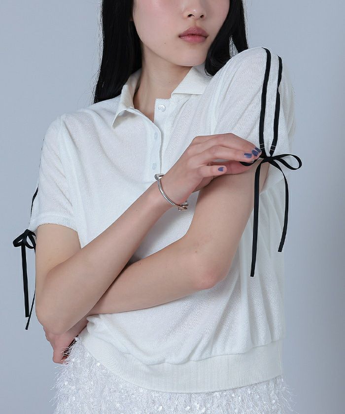 バルーンスリーブリボンシアーブラウス〔メール便可/40〕