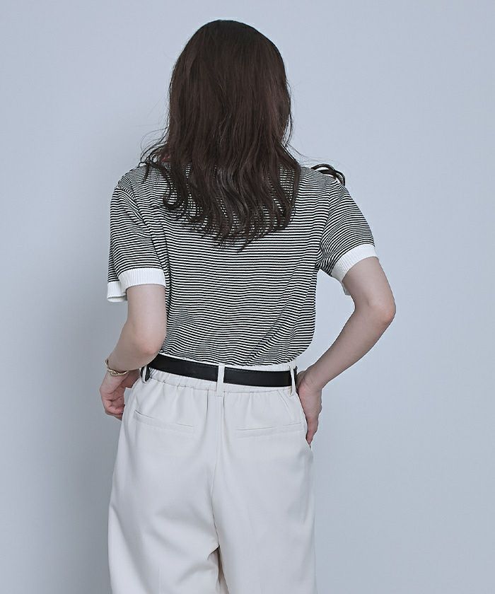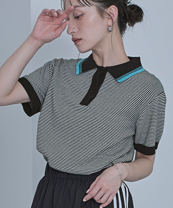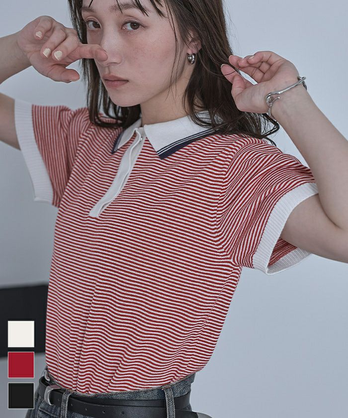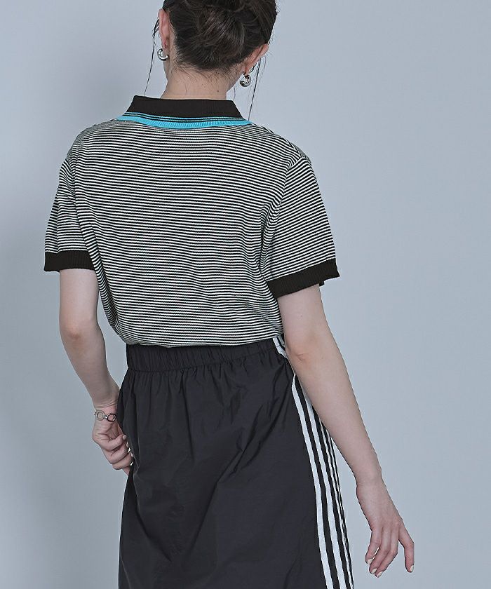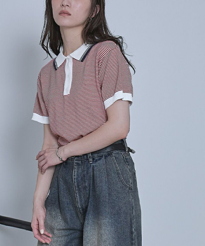 ストライプ切替ジップ半袖シャツ〔メール便可/100〕