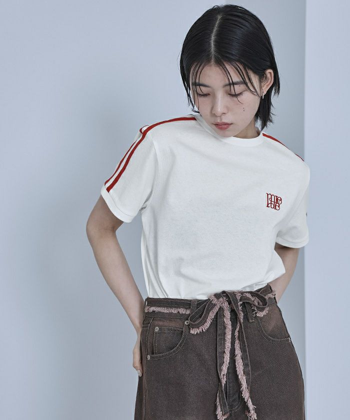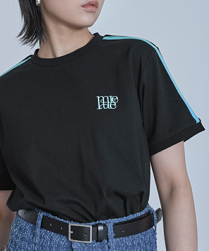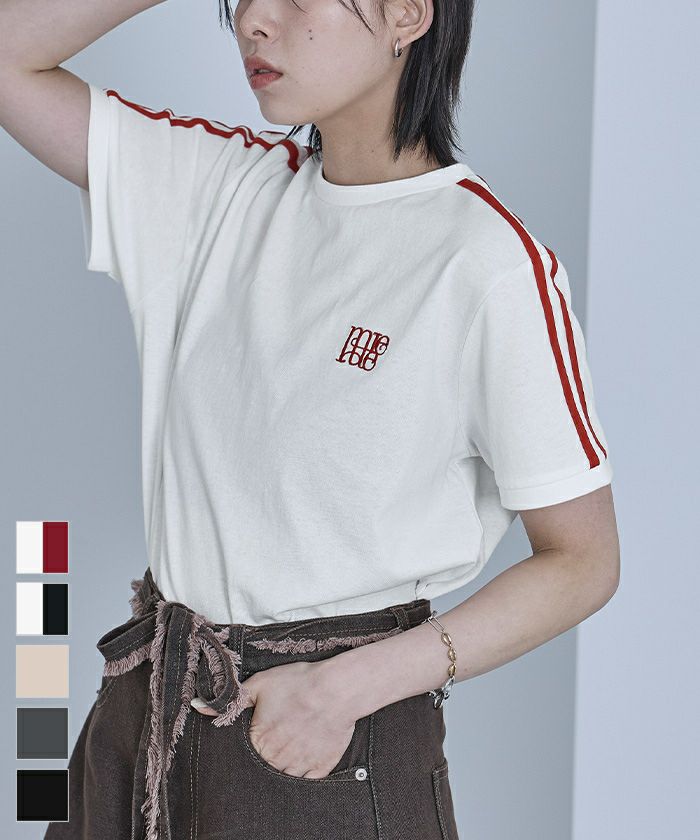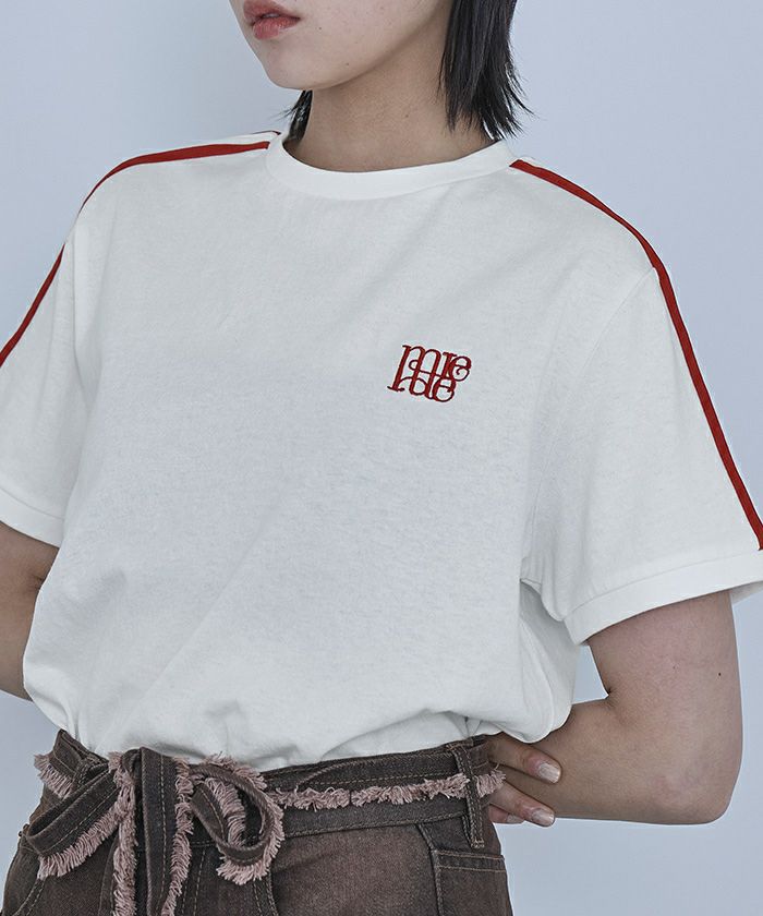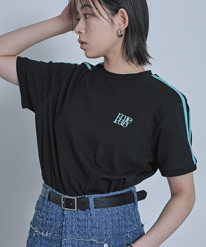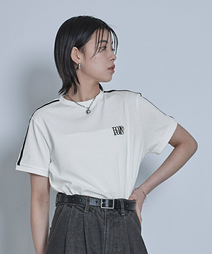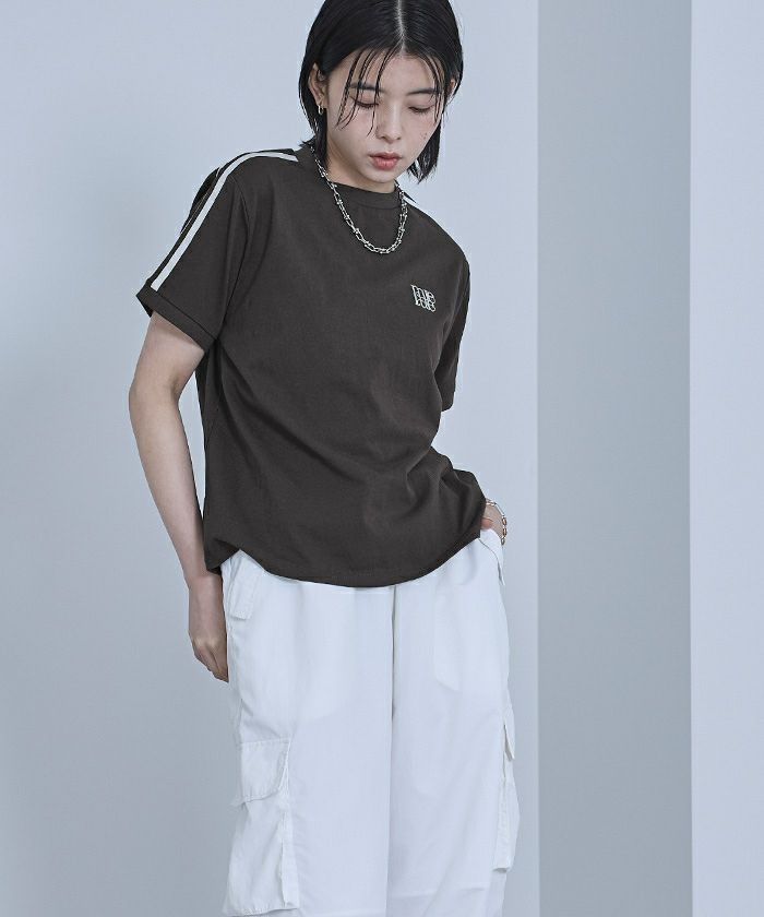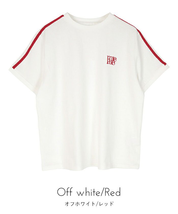 ロゴ刺繍ラインTシャツ〔メール便可/100〕