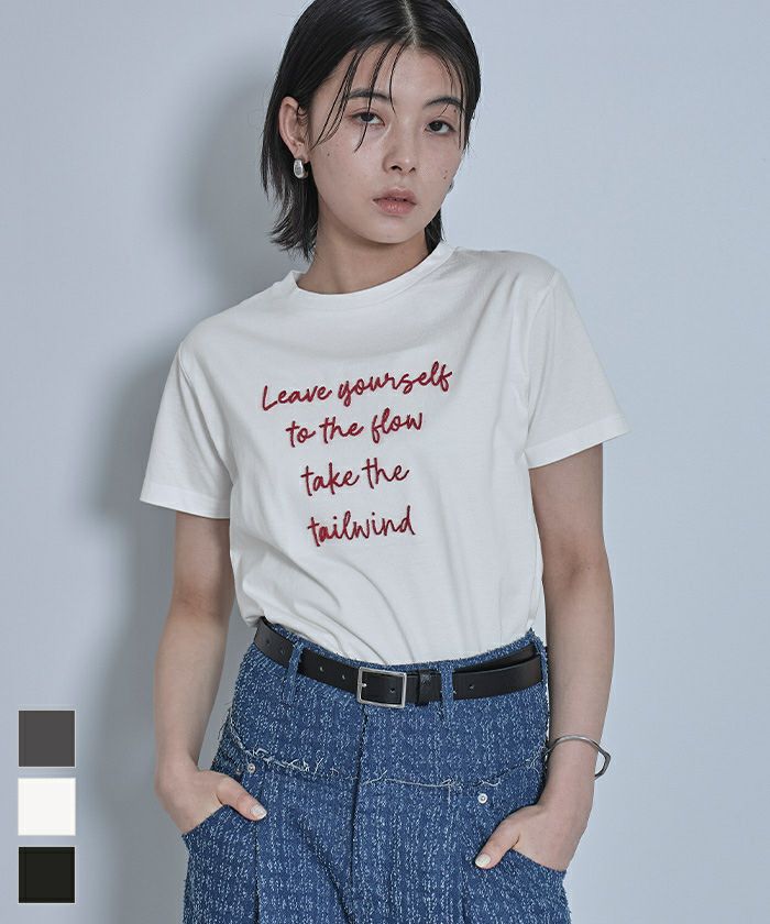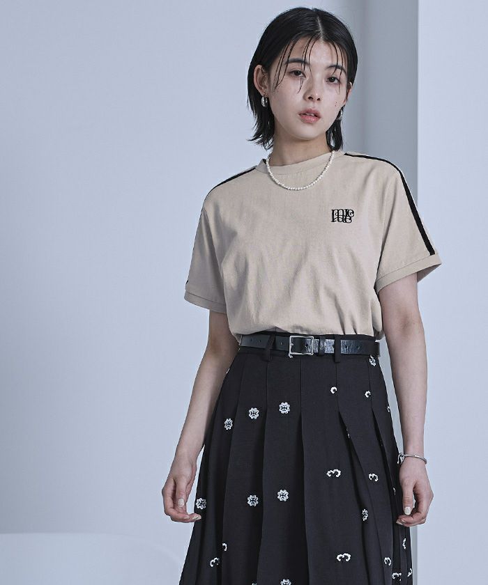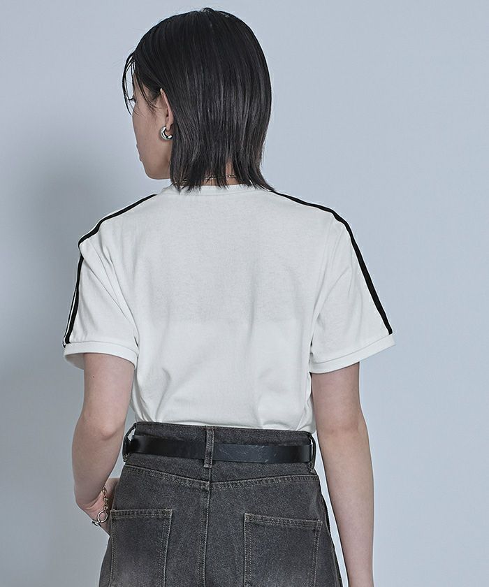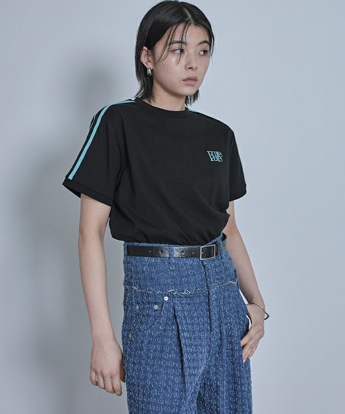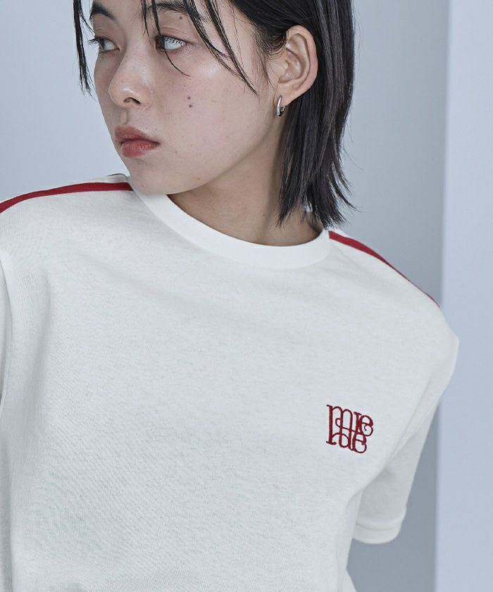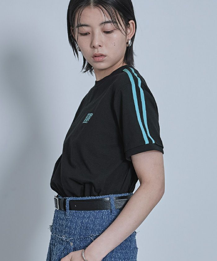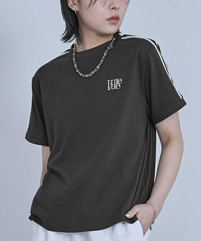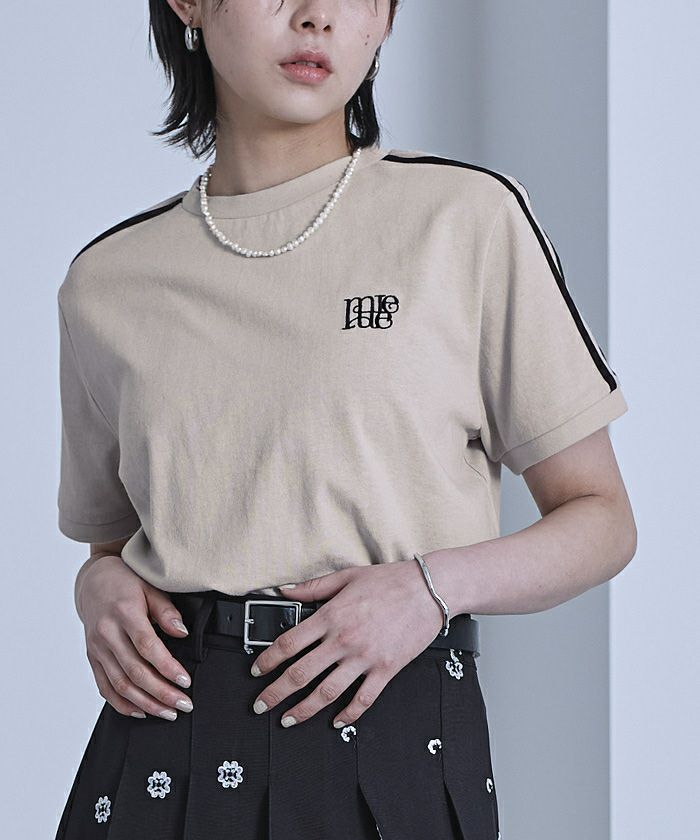 ロゴ刺繍ラインTシャツ〔メール便可/100〕