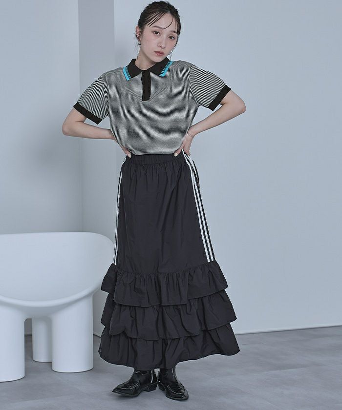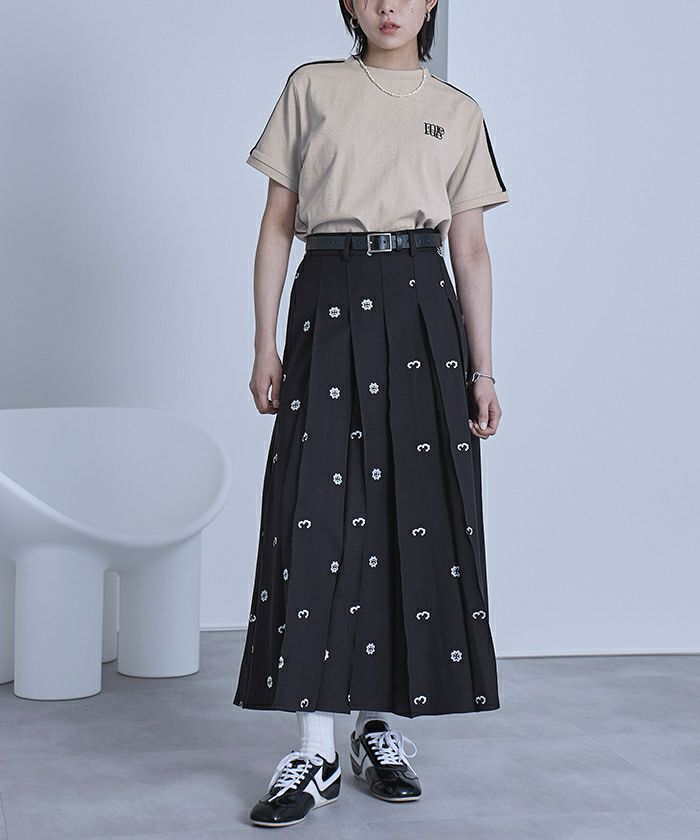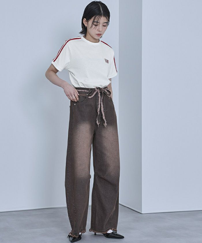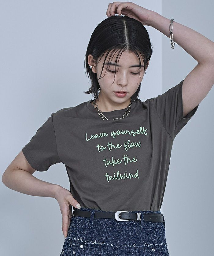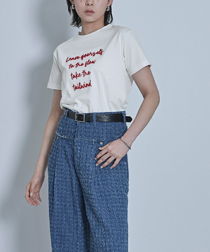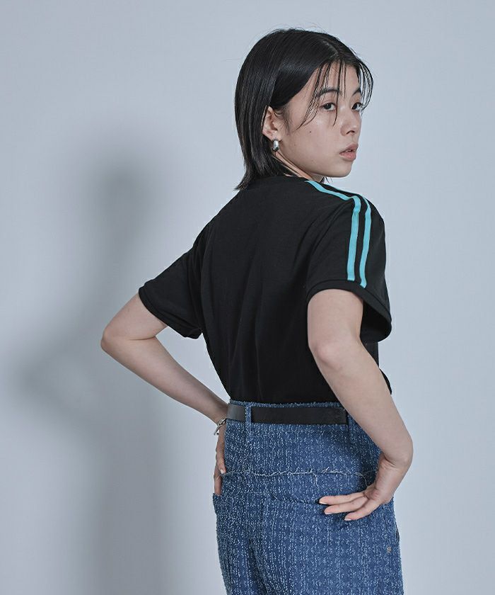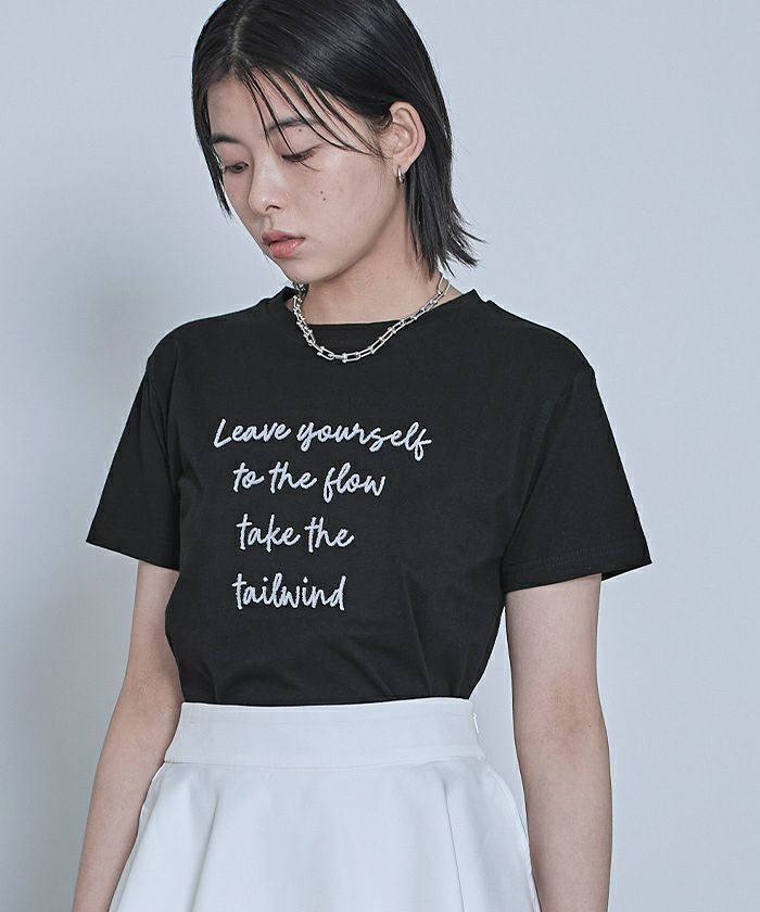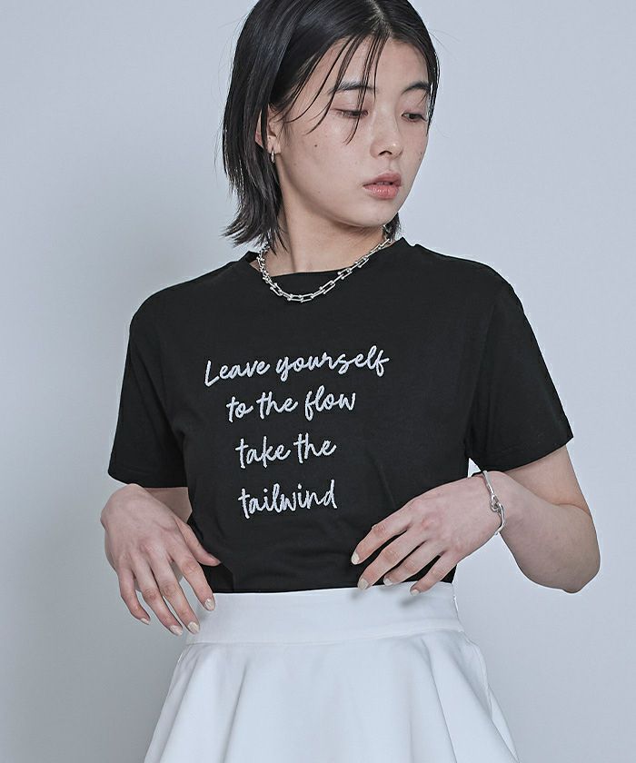 ロゴ刺繍ラインTシャツ〔メール便可/100〕