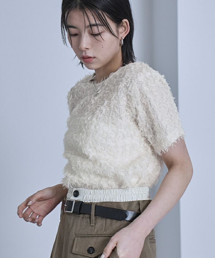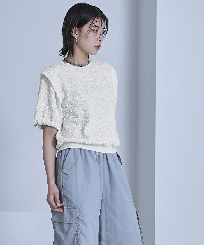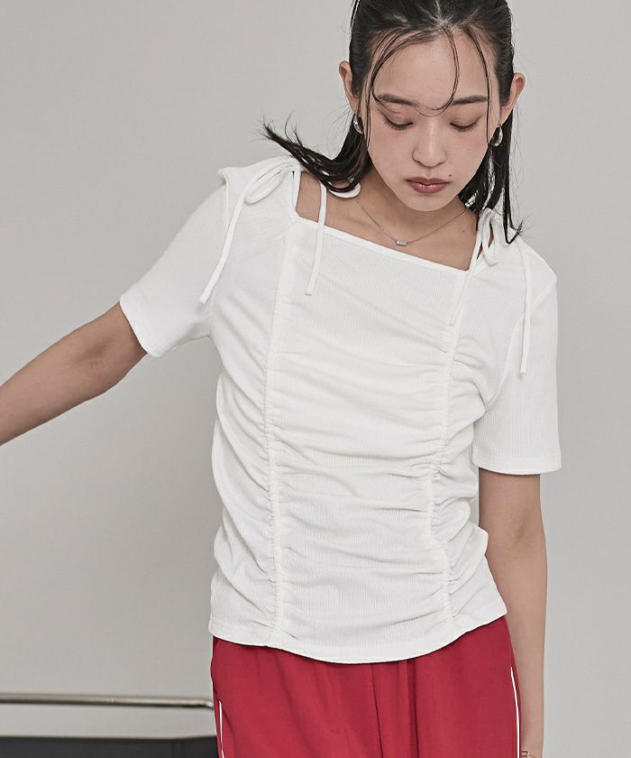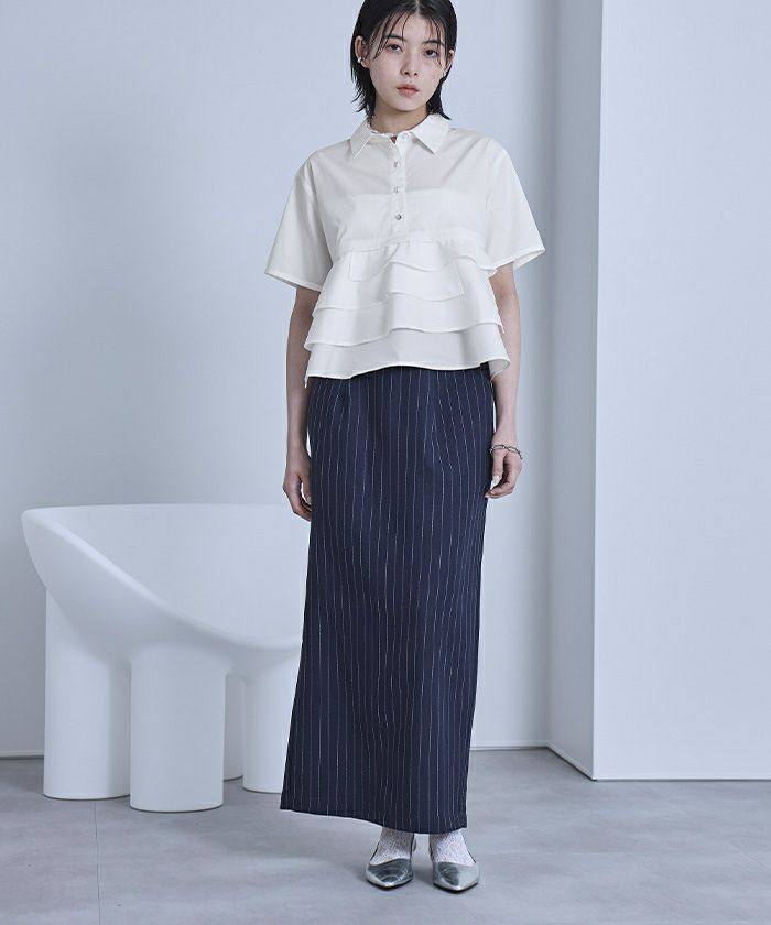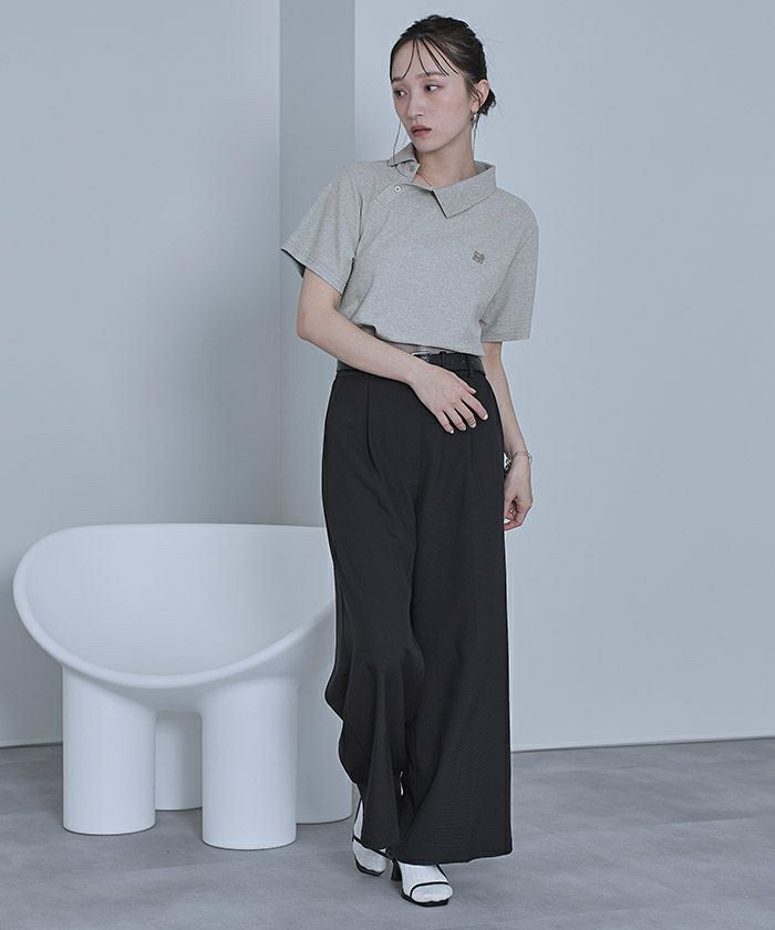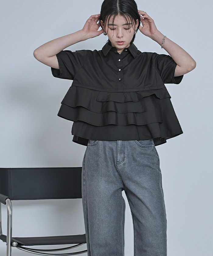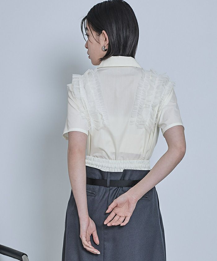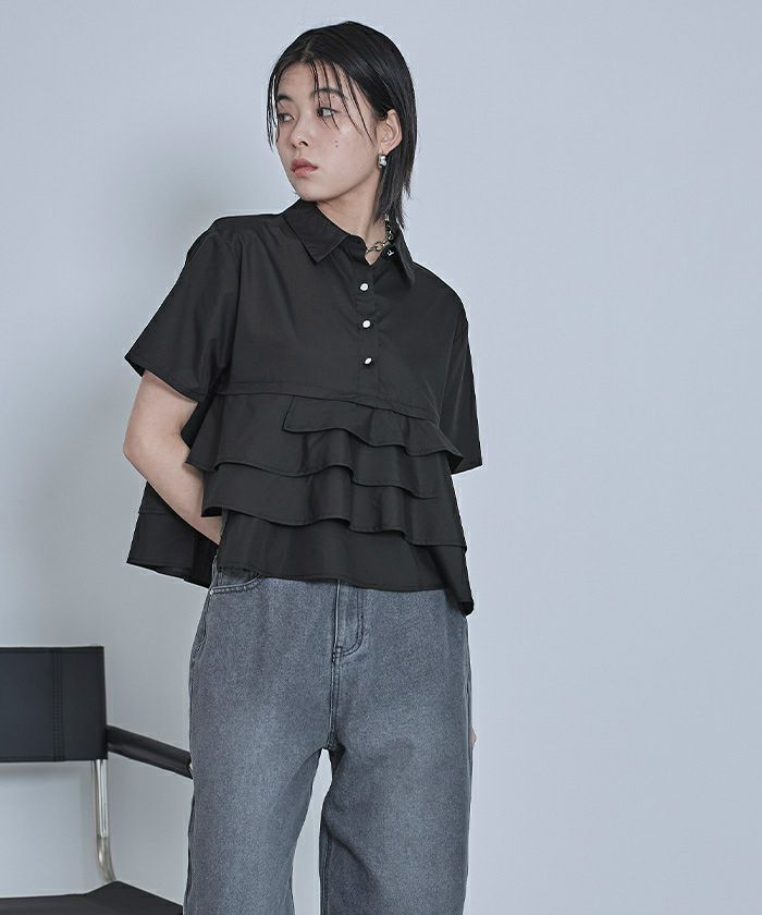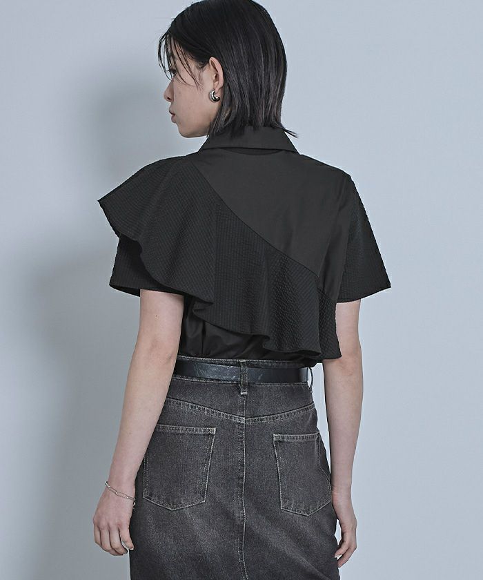 アシンメトリーラッフル半袖シャツ〔メール便可/100〕