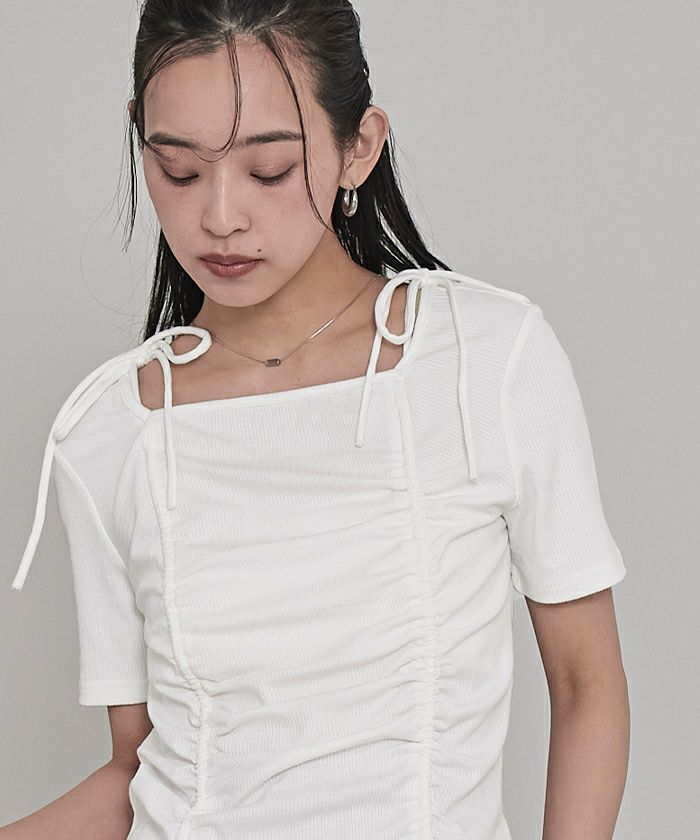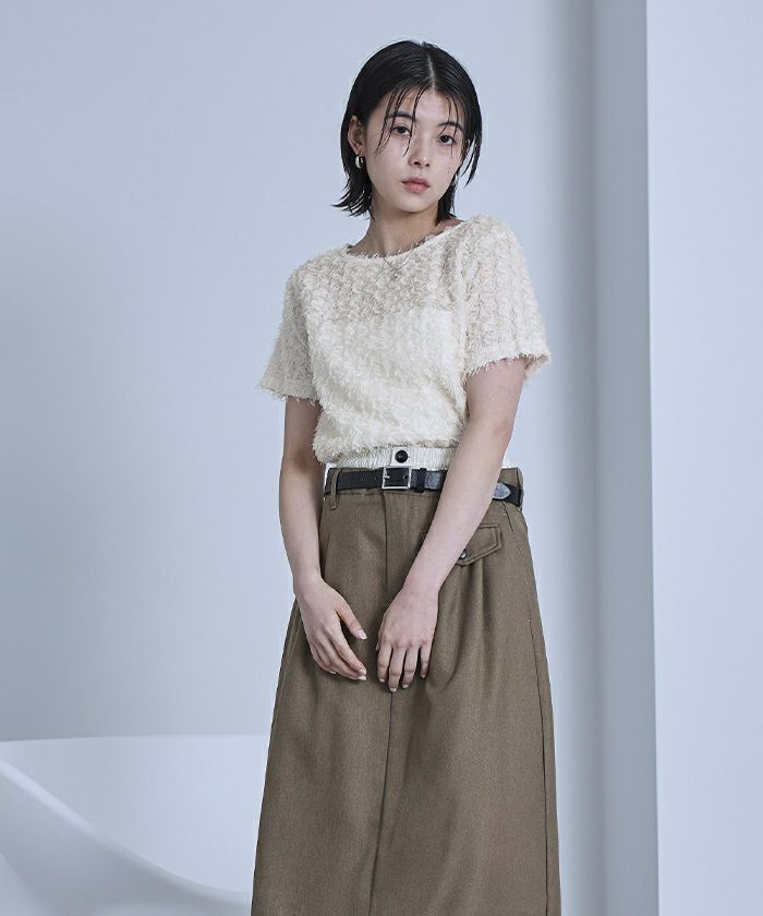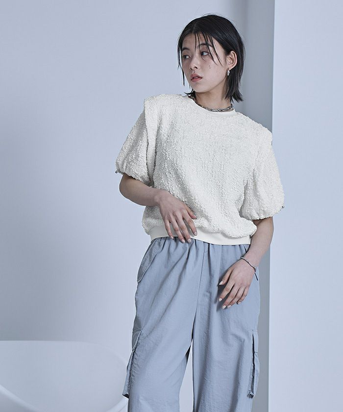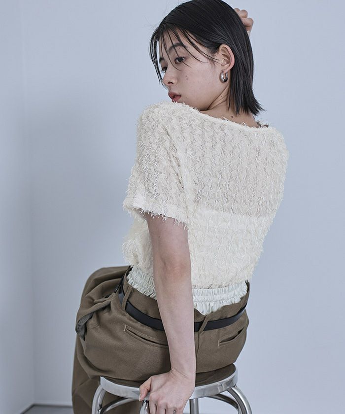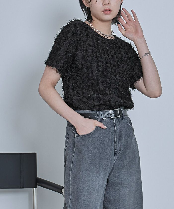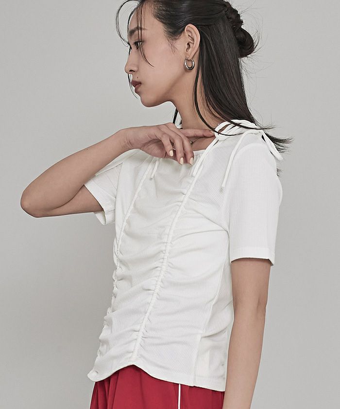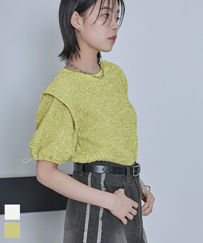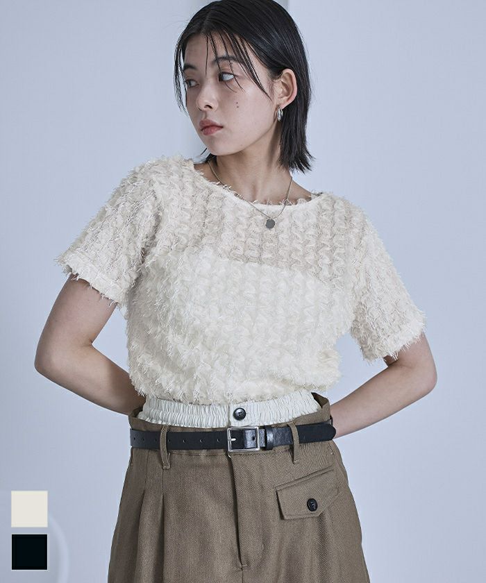 アシンメトリーラッフル半袖シャツ〔メール便可/100〕