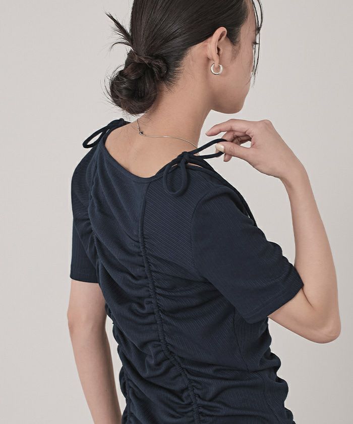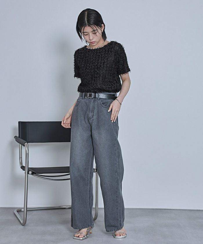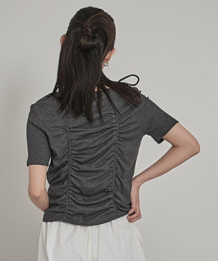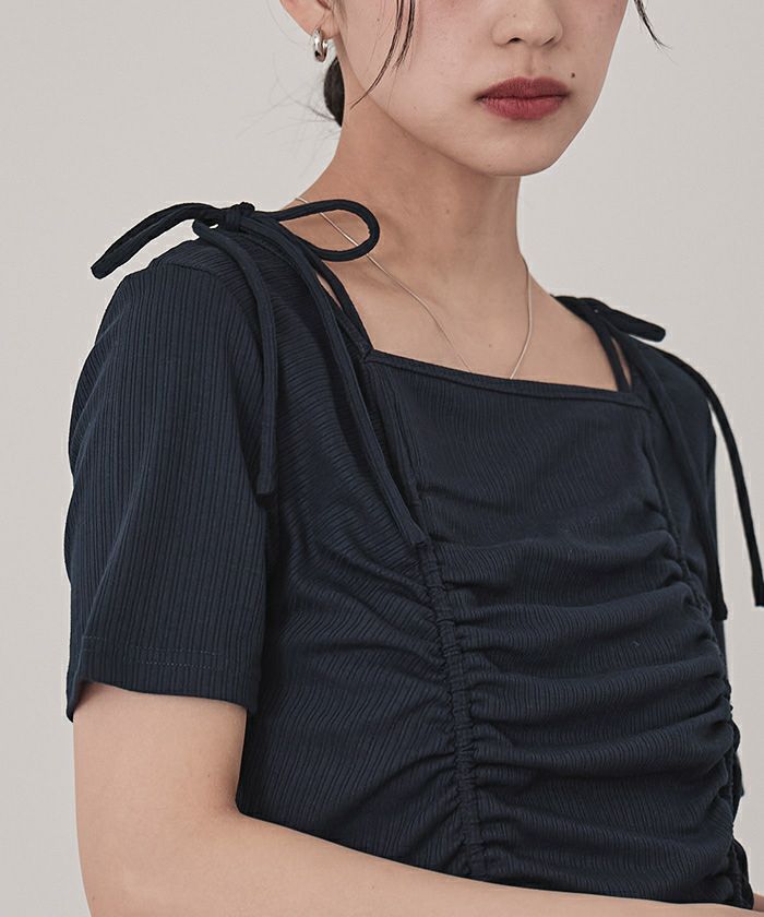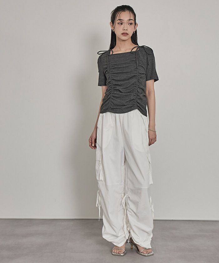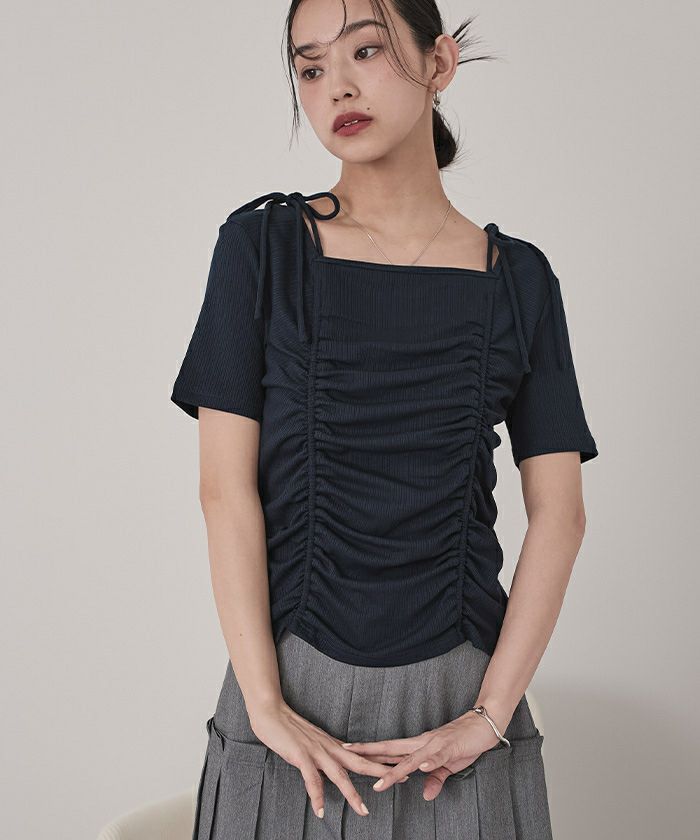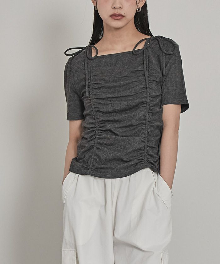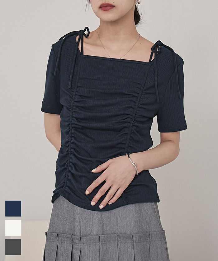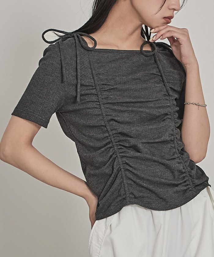 アシンメトリーラッフル半袖シャツ〔メール便可/100〕