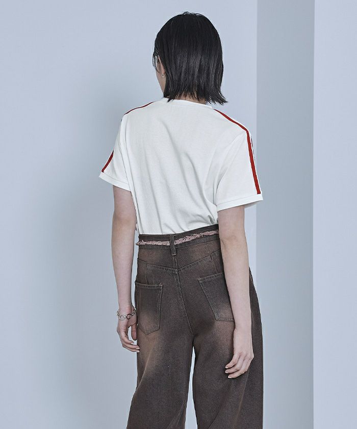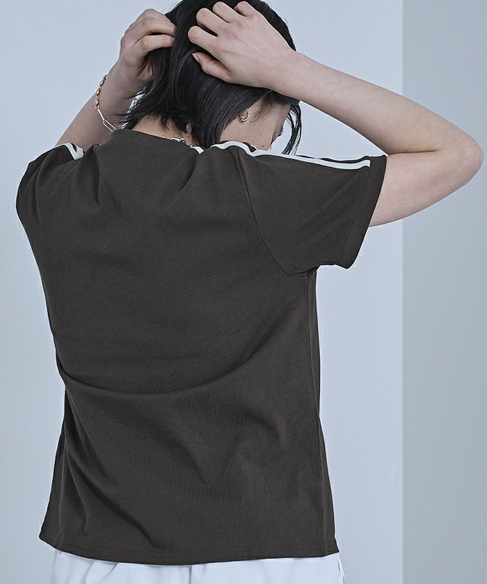 配色ステッチスリットスリーブTシャツ〔メール便可/100〕