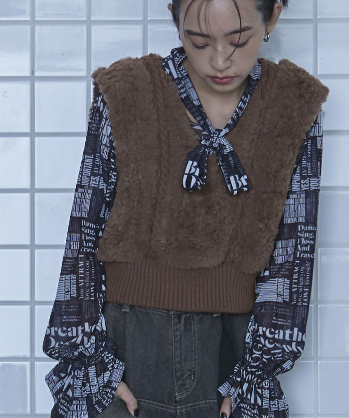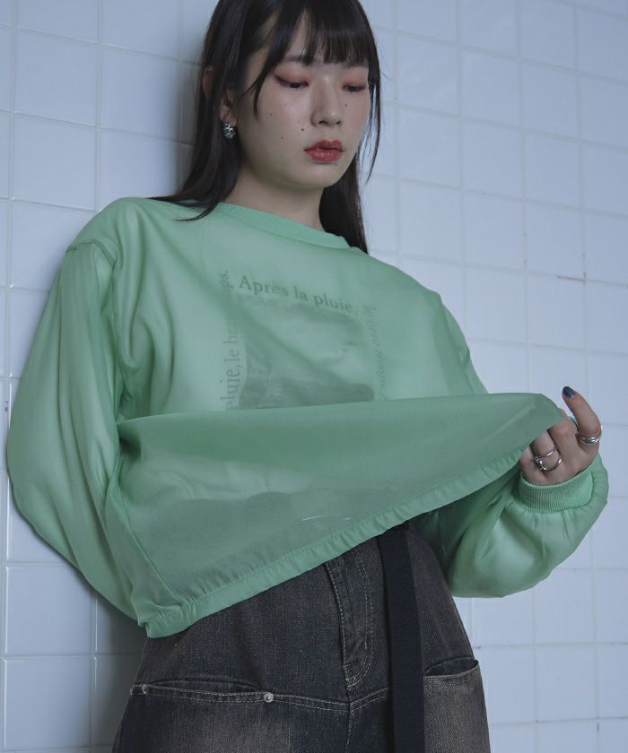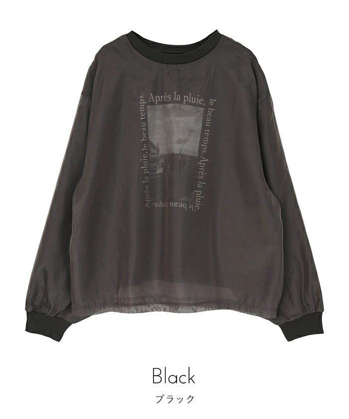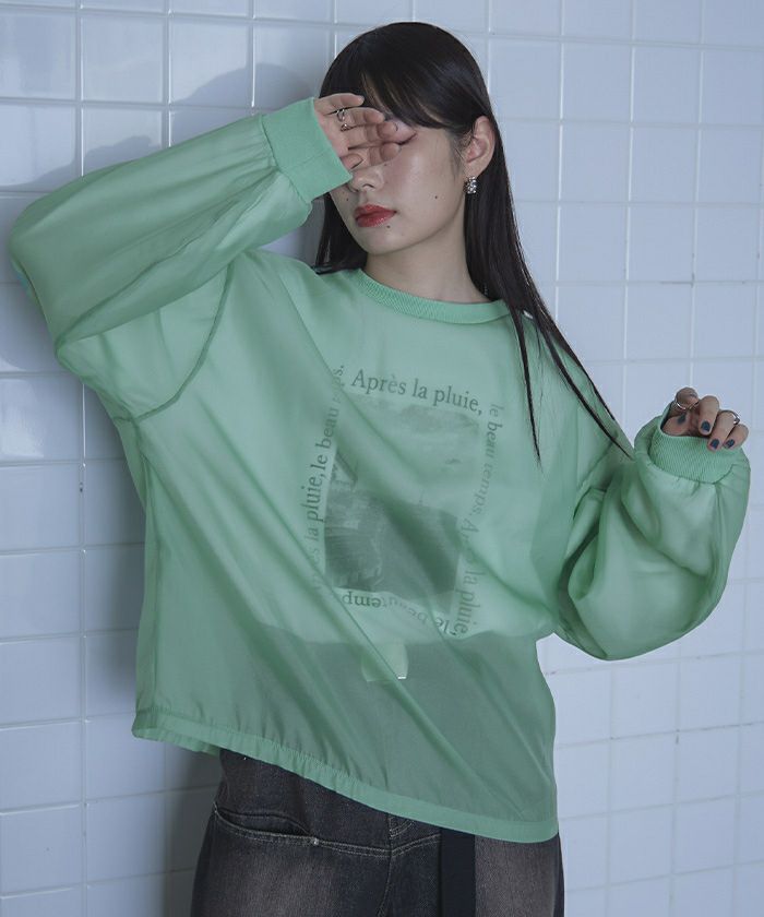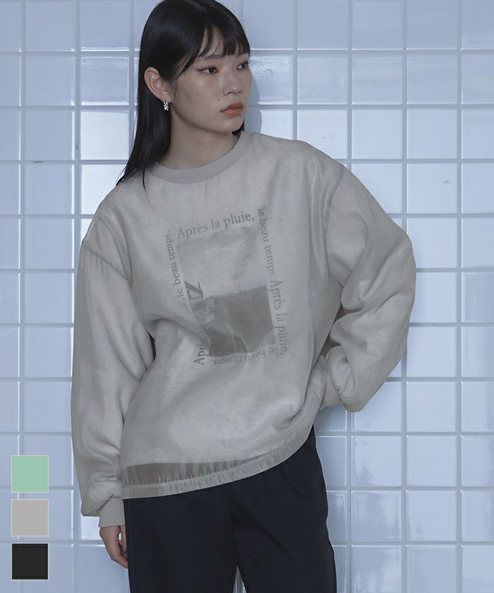 オーガンジーフォトプリントロゴ裏毛プルオーバー