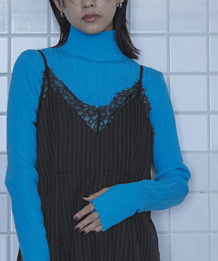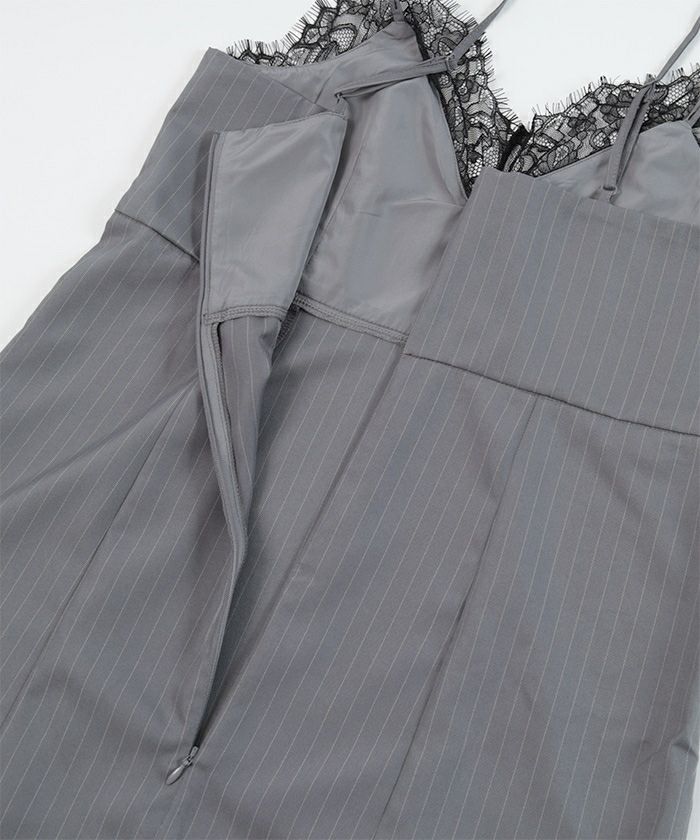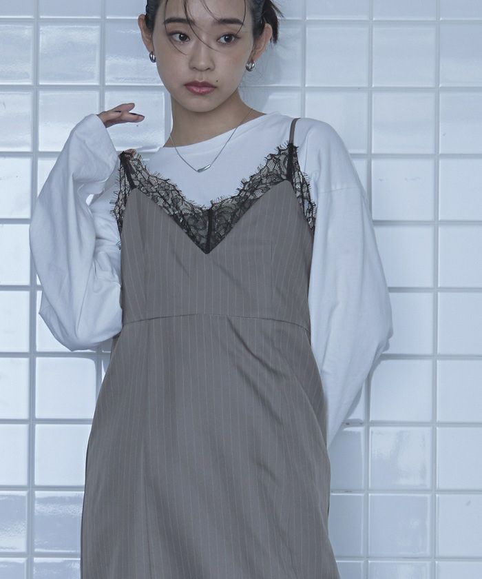 レーストリムピンストライプキャミソールワンピース〔メール便可/80〕
