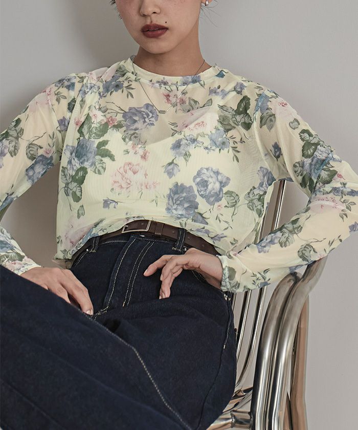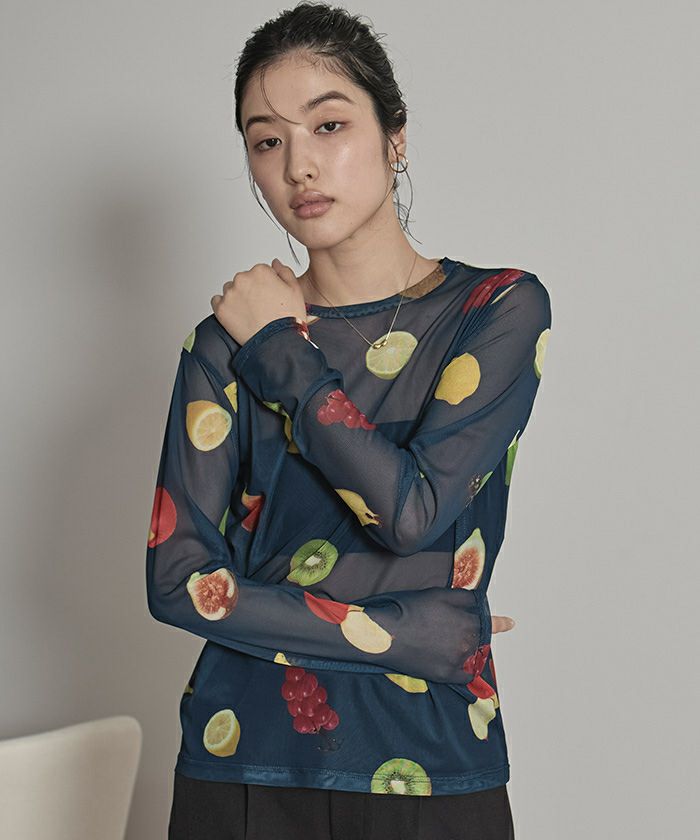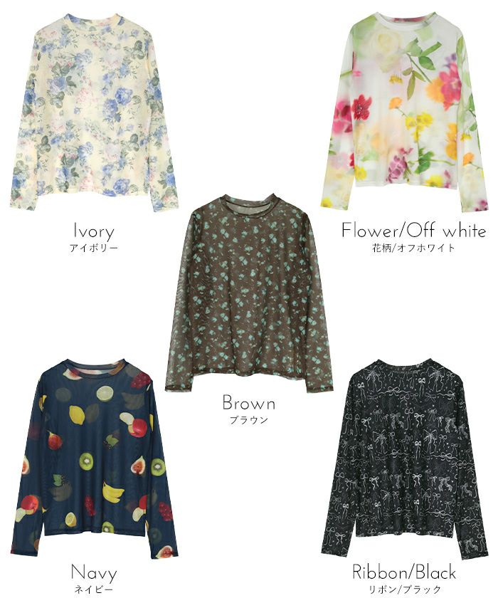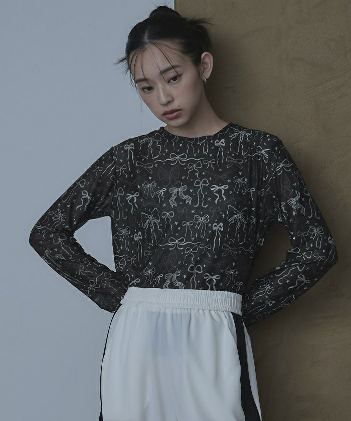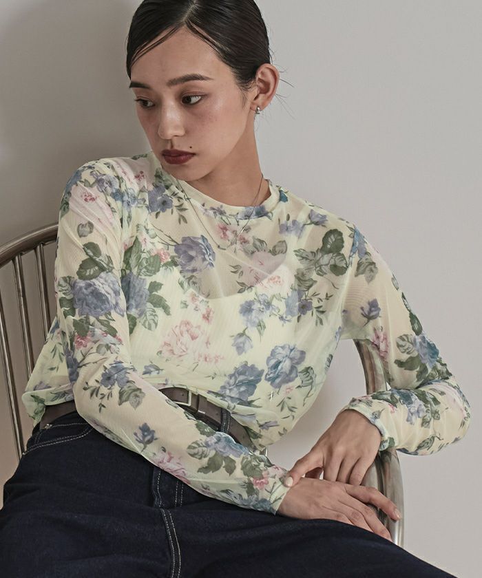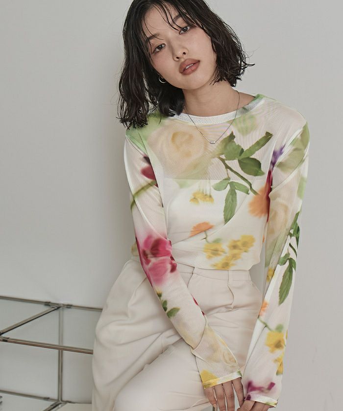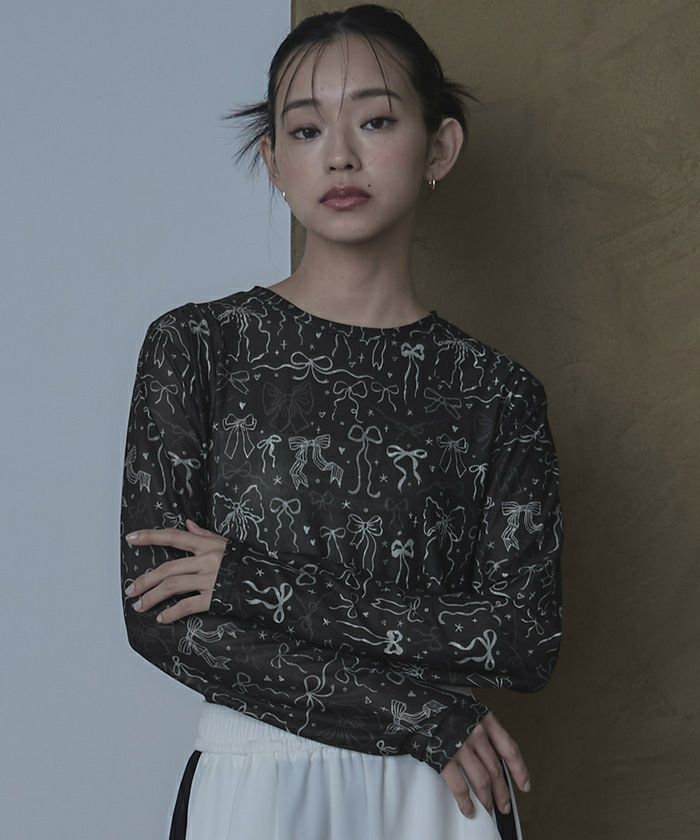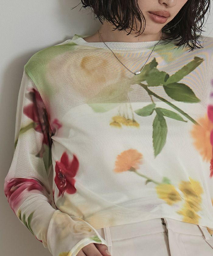 プリントチュールクルーネックトップス〔メール便可/30〕