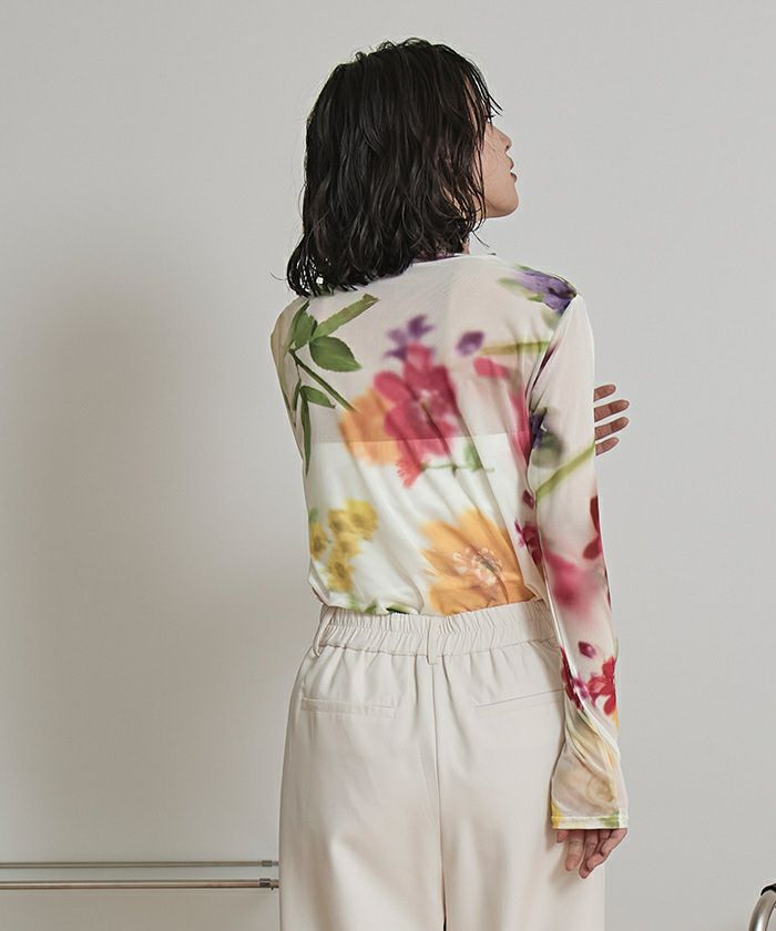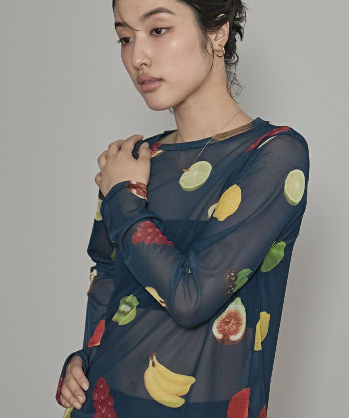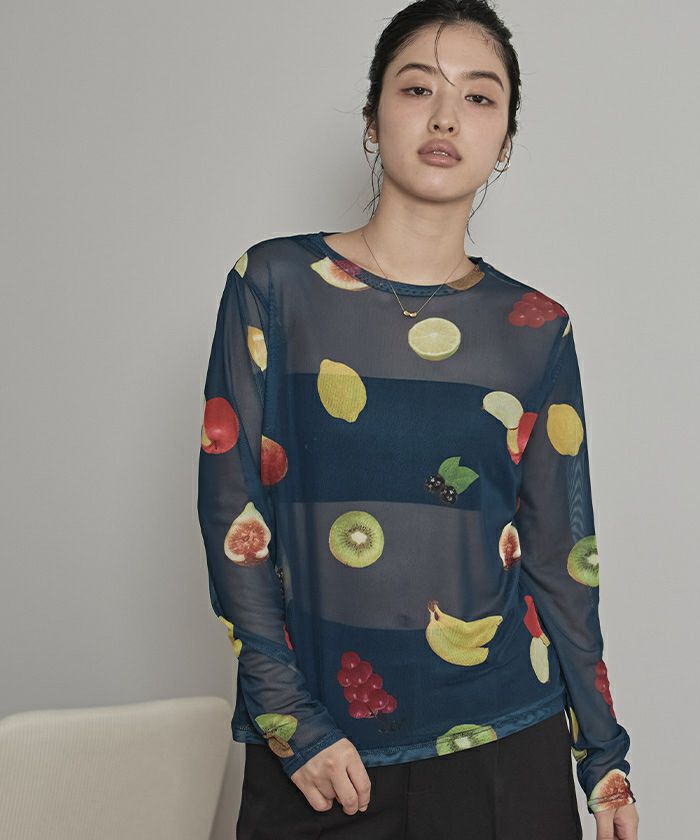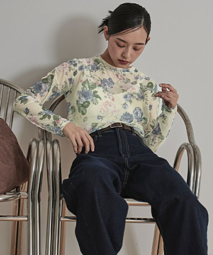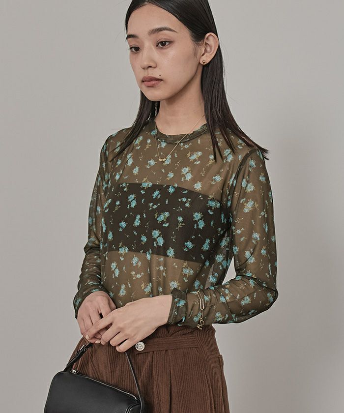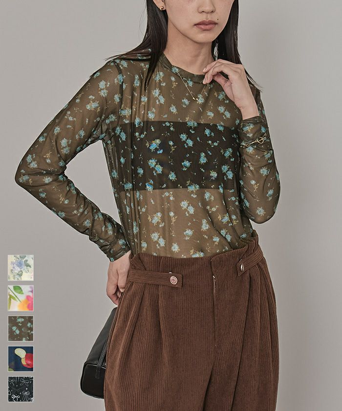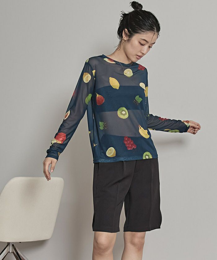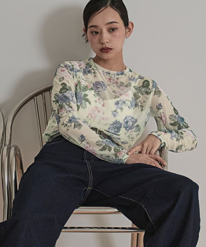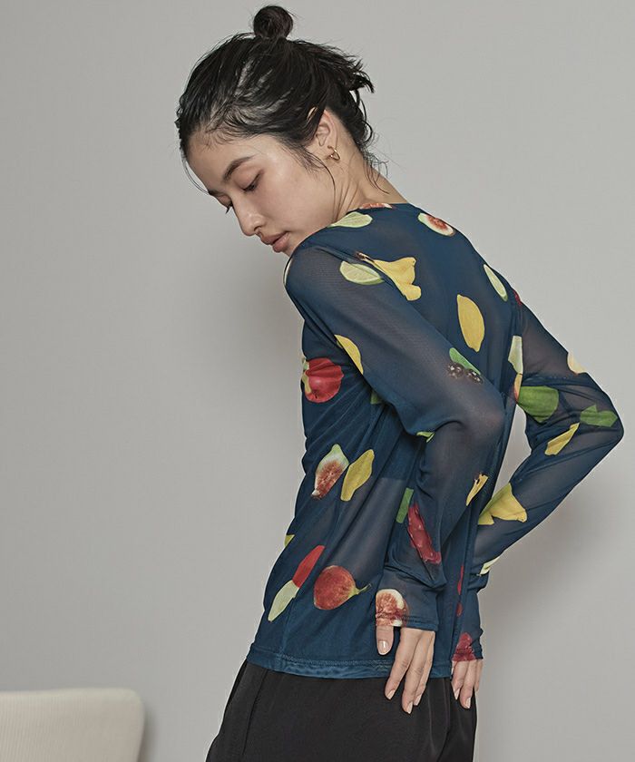 プリントチュールクルーネックトップス〔メール便可/30〕