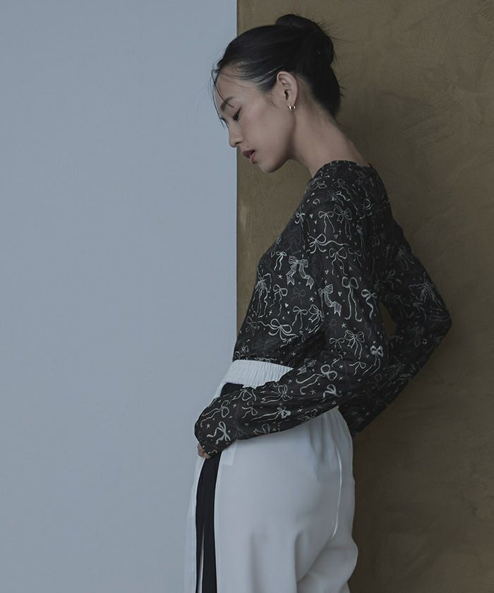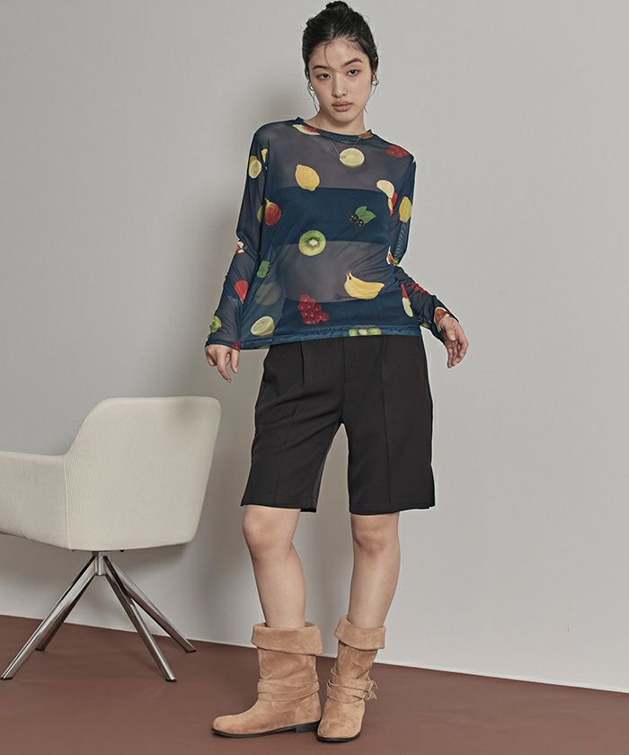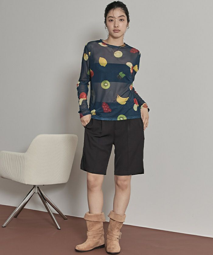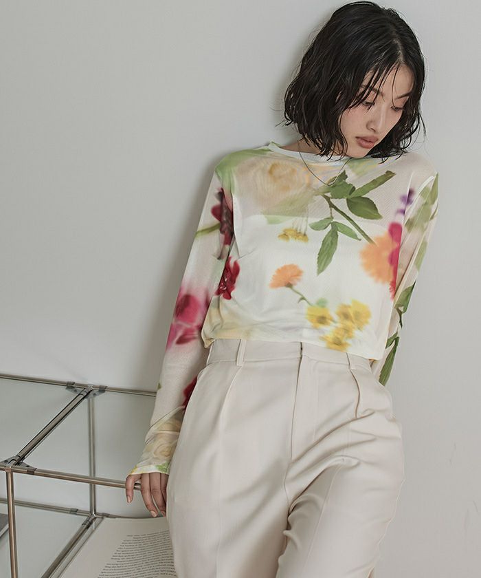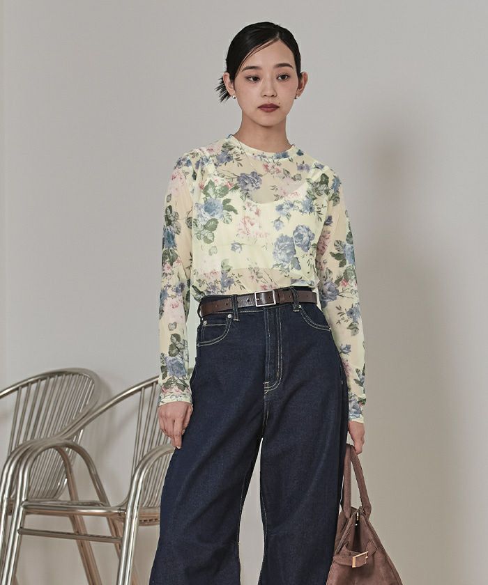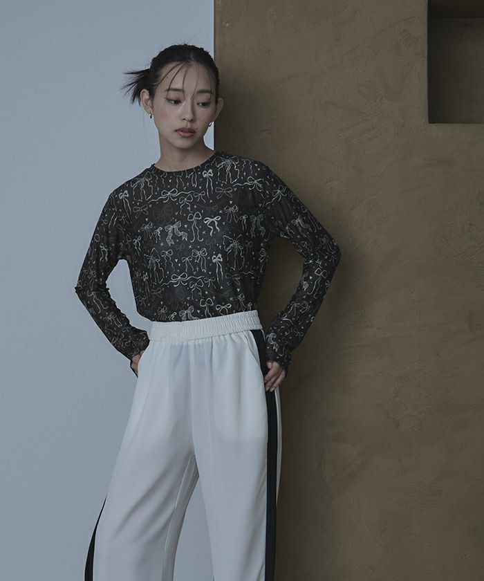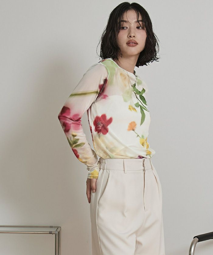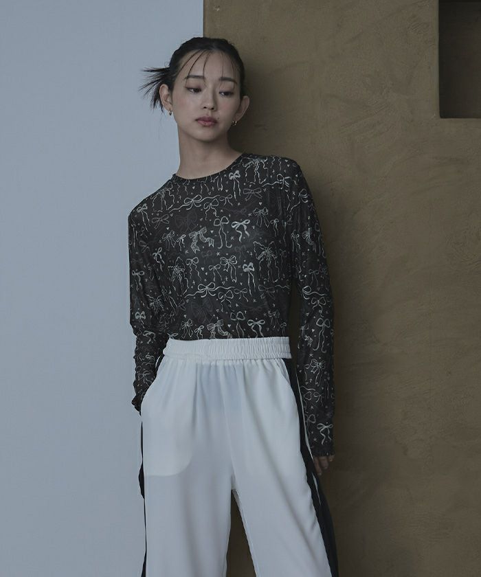プリントチュールクルーネックトップス〔メール便可/30〕