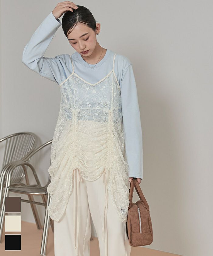 ドロストレースキャミソールワンピース〔メール便可/100〕