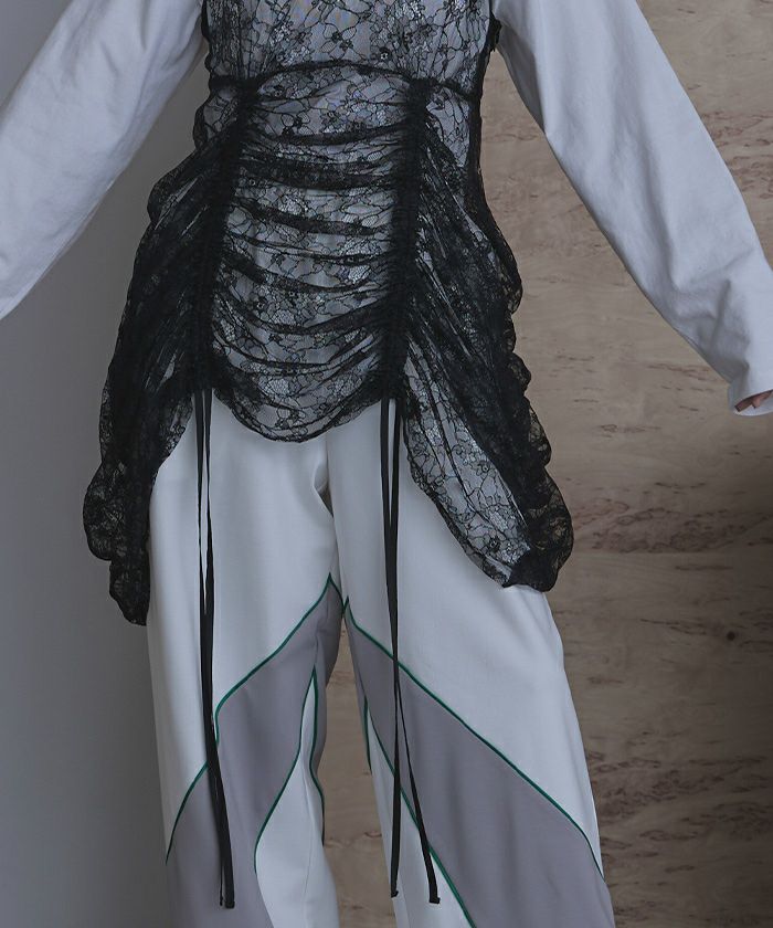 こちらの製品は素材感と雰囲気を重視し、オシャレ感を表現するために非常に柔らかい風合いの生地を使用しています。激しい運動や強度な力が加われば縫い目が開いたり、目寄れ(織り糸の滑り目が開く)する性質をもっています。この点をご留意の上ご着用ください。