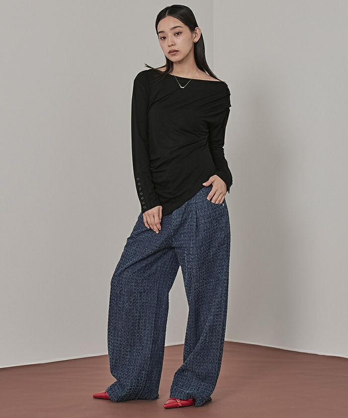 アシンメトリーオフショルダートップス