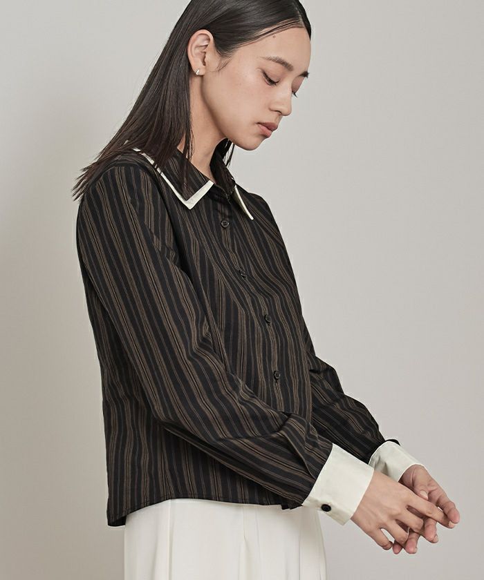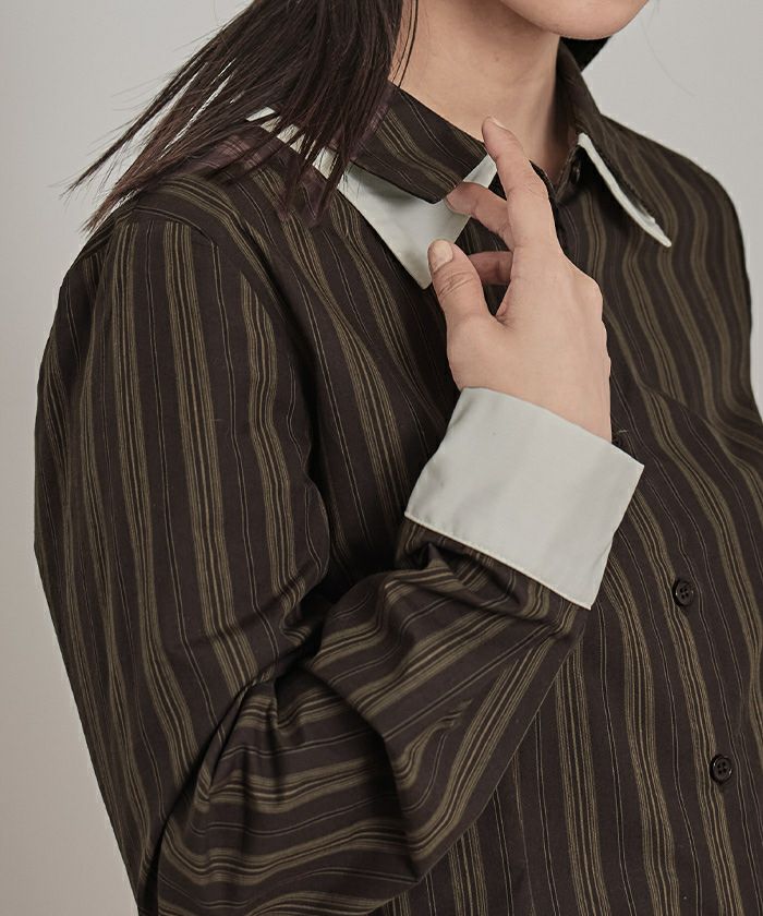 ・レイヤードデザインのダブル襟が旬顔なストライプシャツ