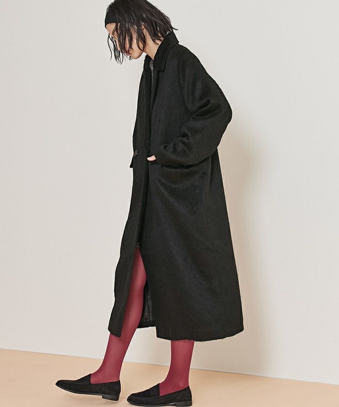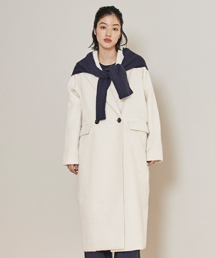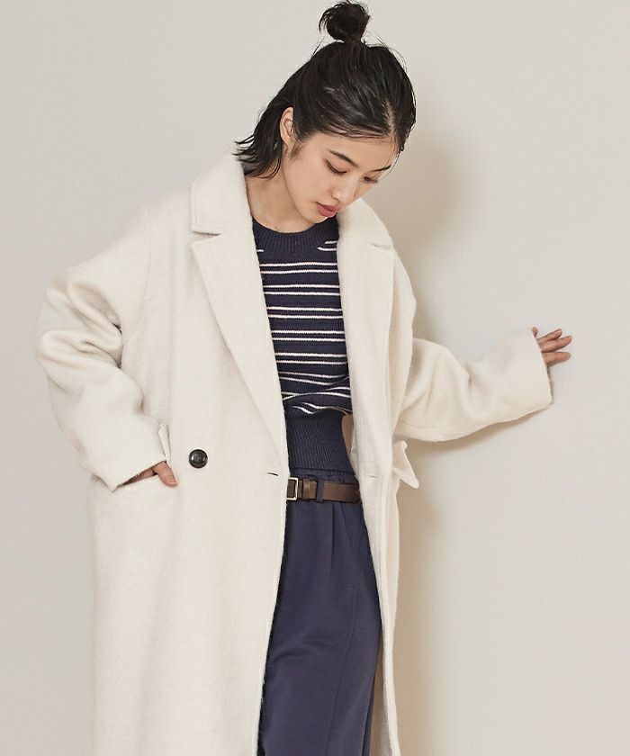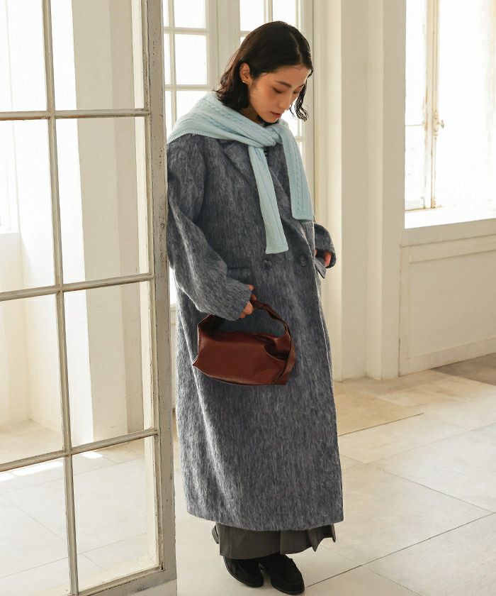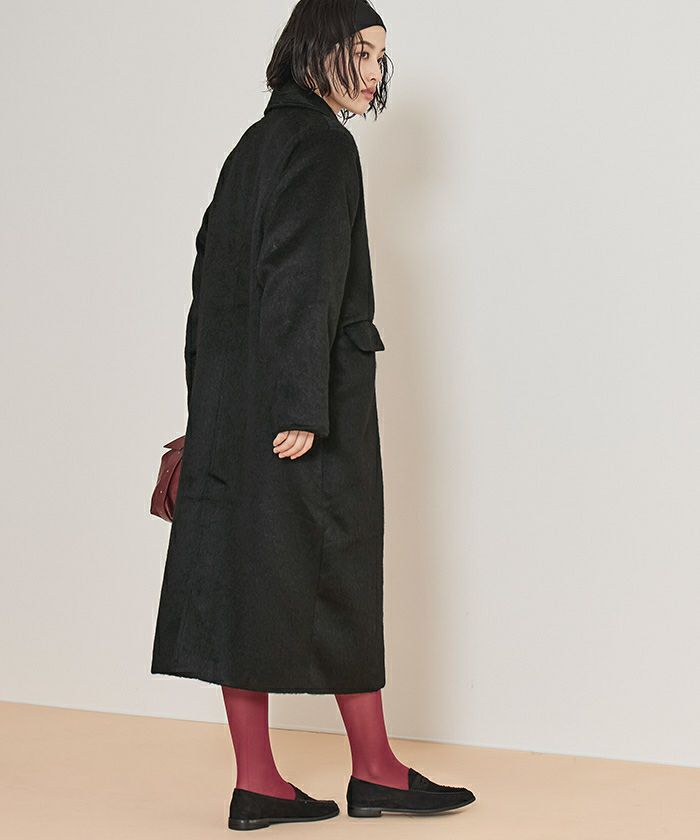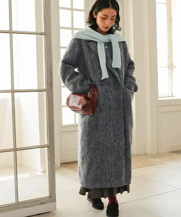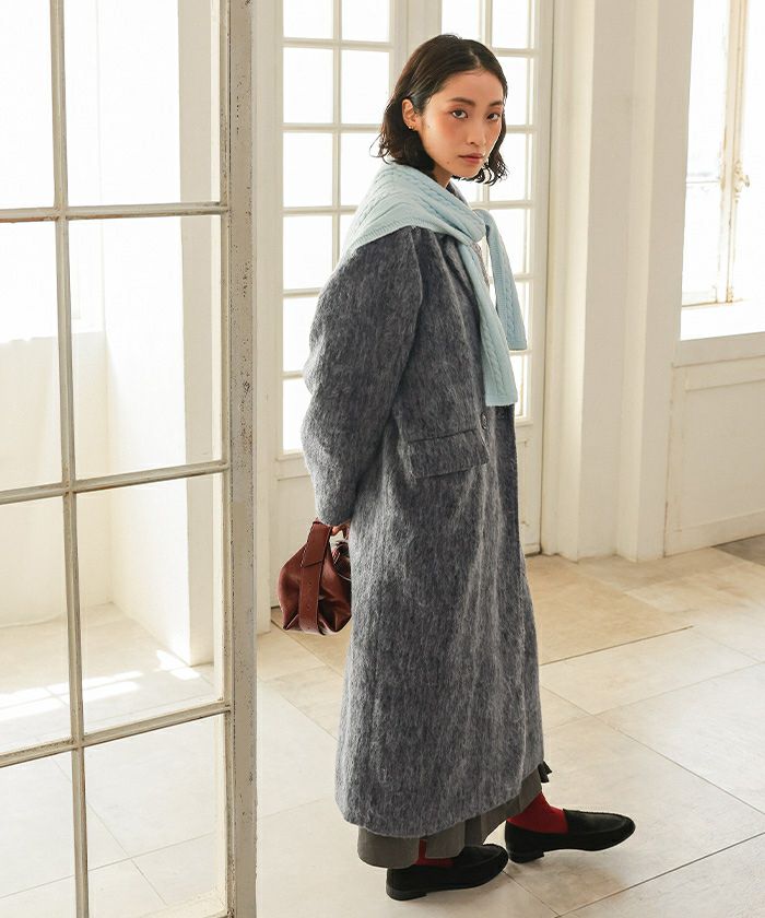 ・クラシックなチェスターコートを、毛足のある柔らかなシャギー素材でアップデート