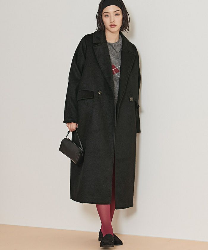 ・ロング丈とダブルボタンのデザインがシックな存在感を放つ