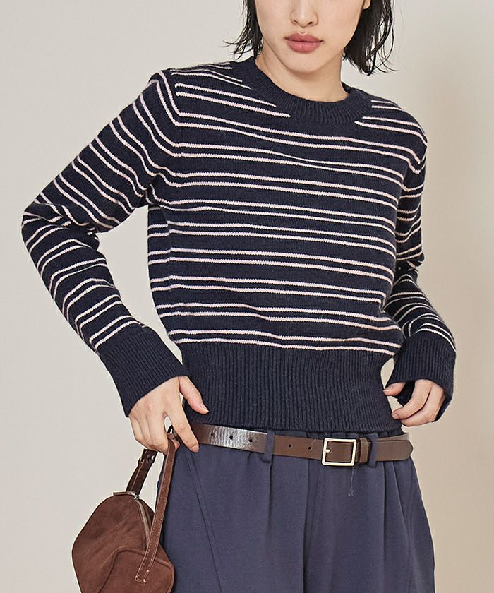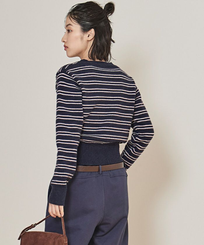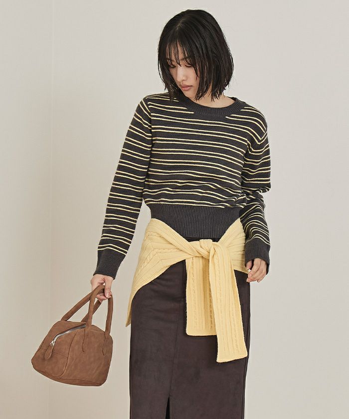 ・配色のマルチボーダーとケーブル編みニットショールのセット商品