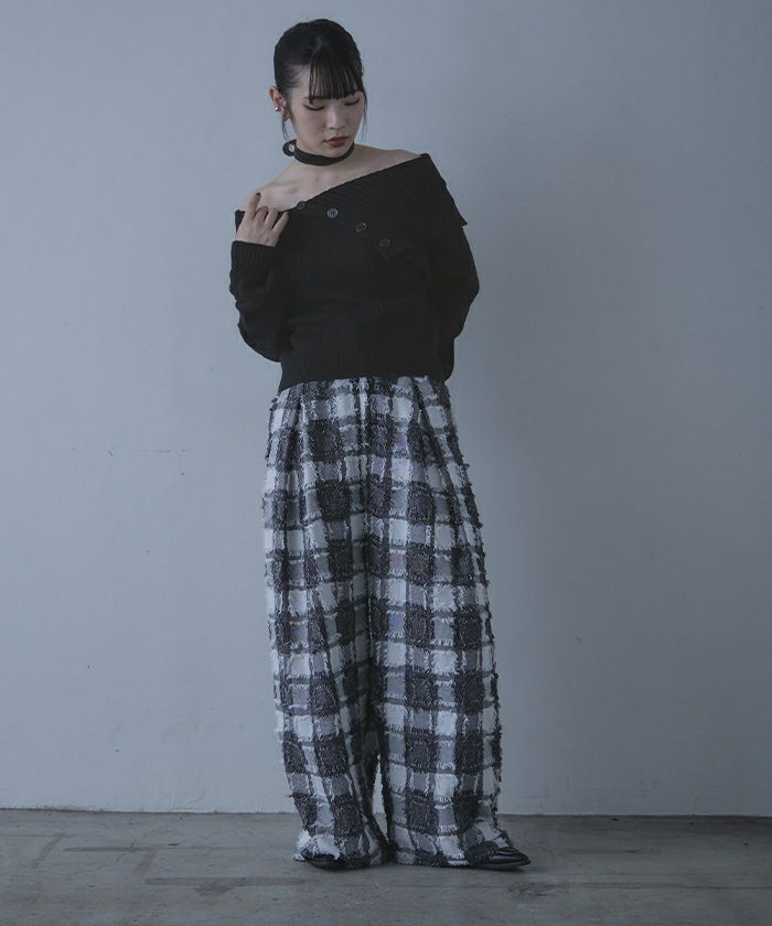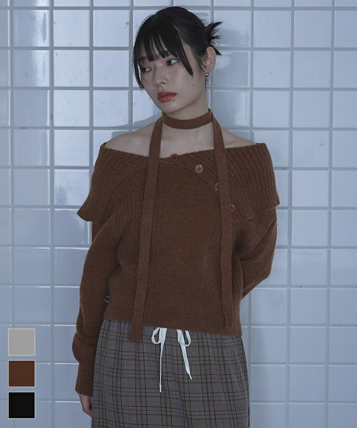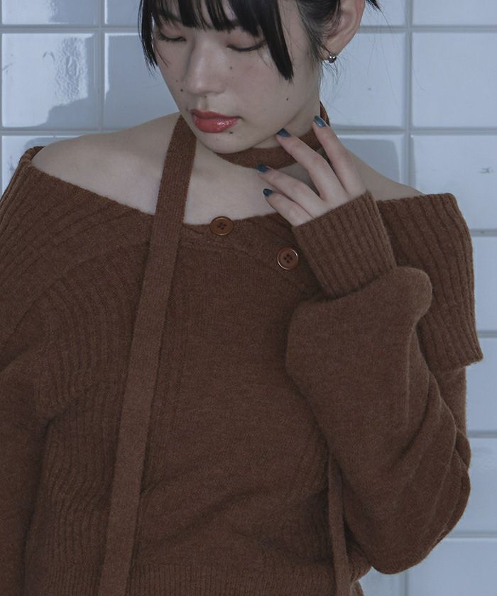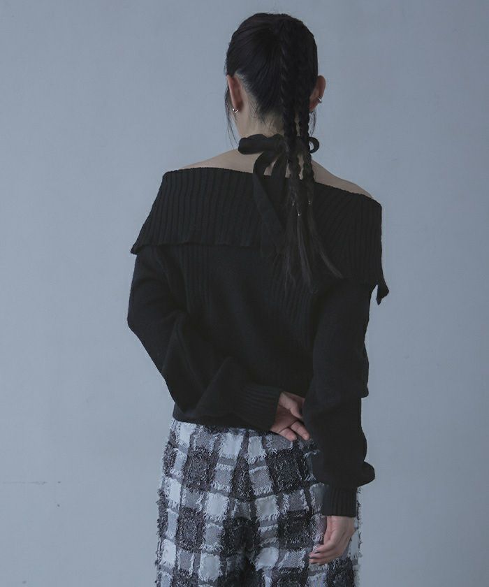 ロングタイ付きオフショルニット
