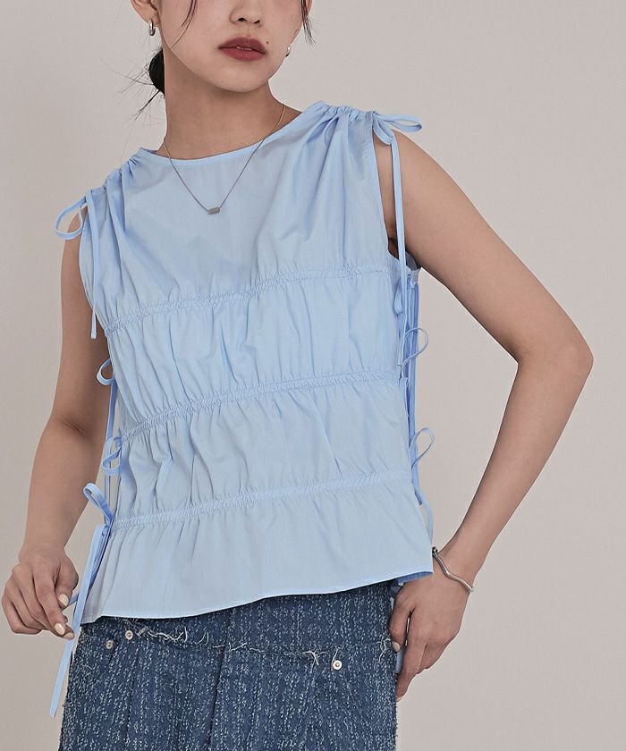 ・脇と肩のリボンがかわいく1枚でおしゃれに決まります
